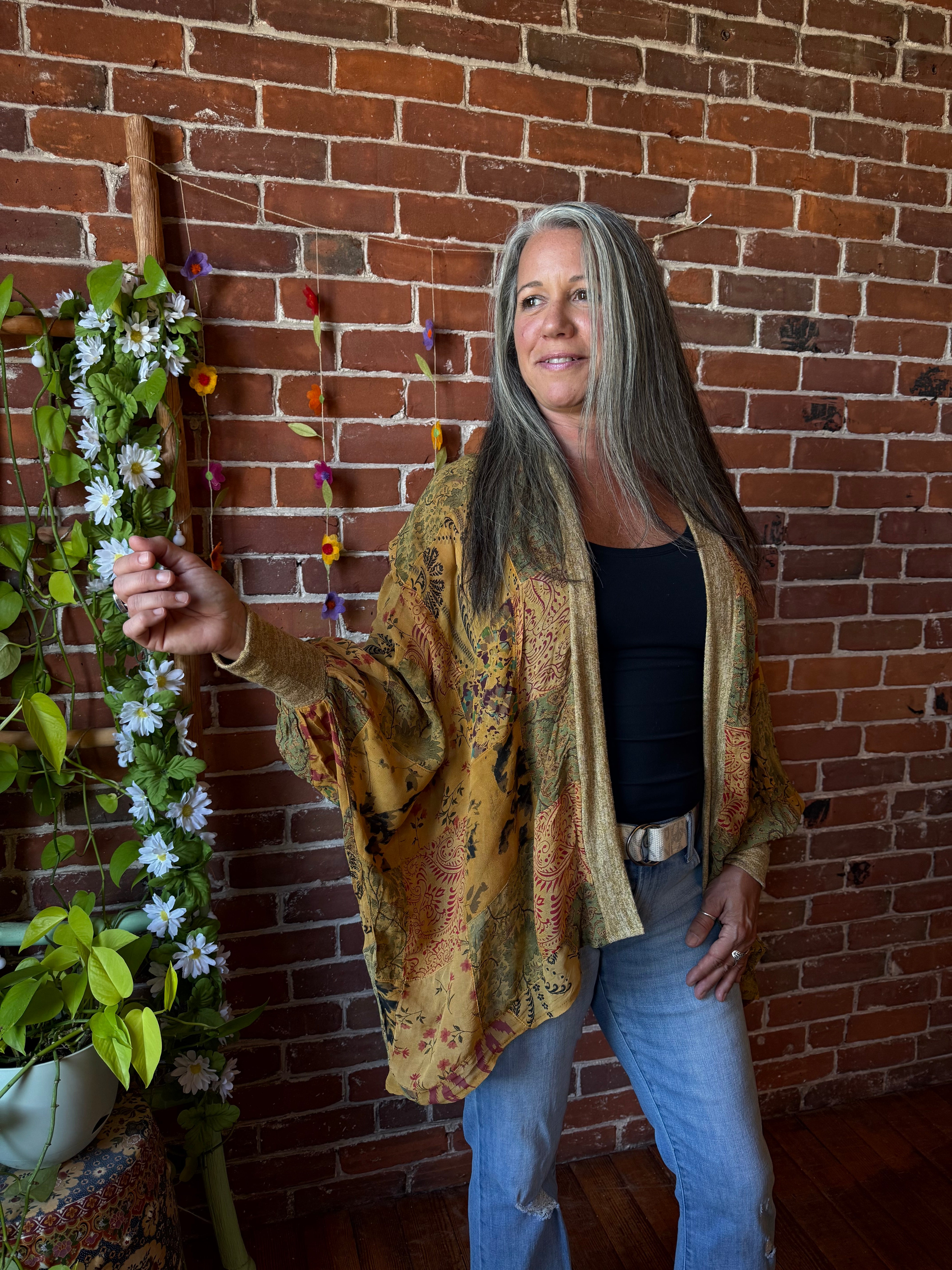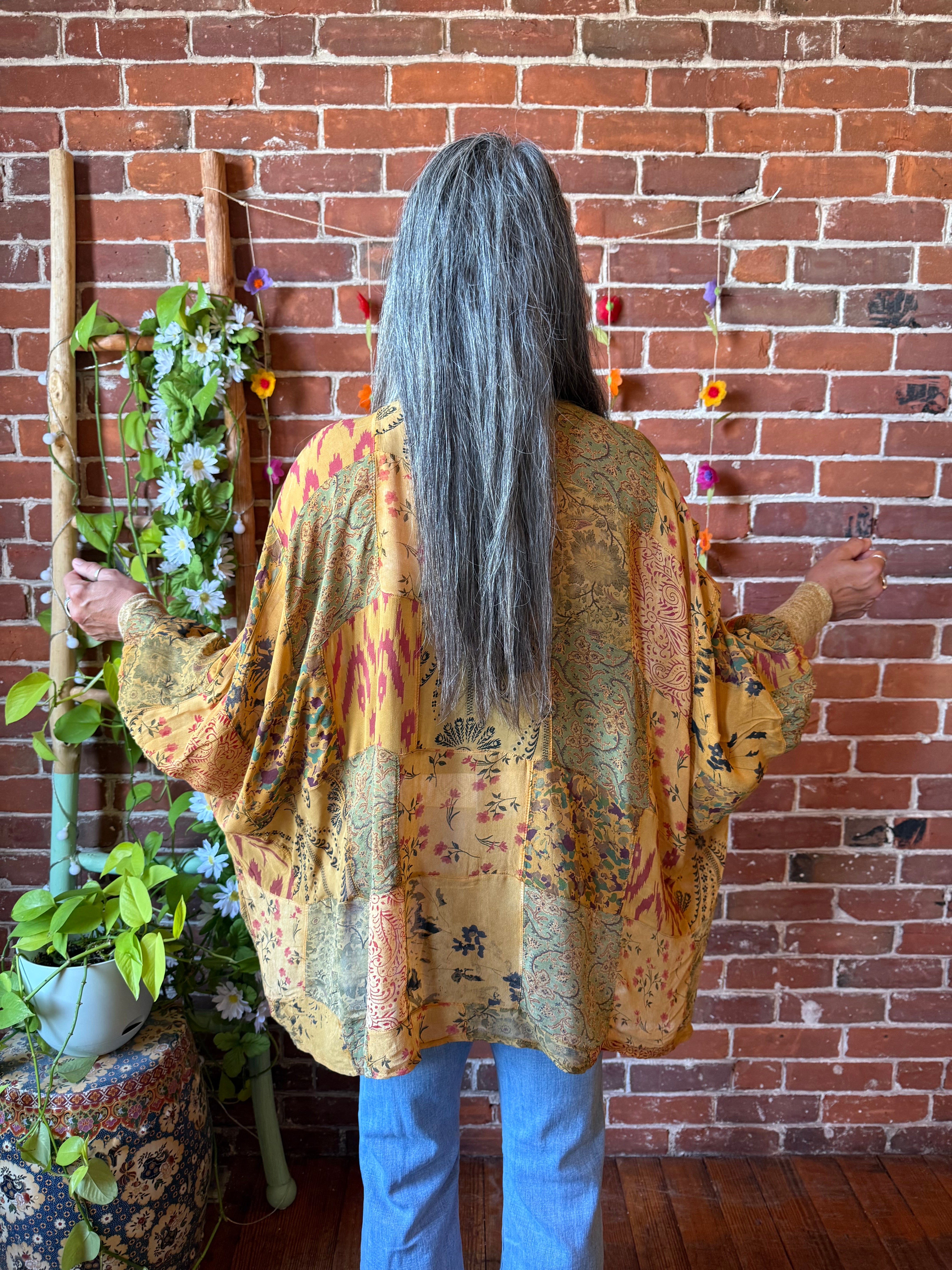 Marigold Patchwork Batwing Sleeve Kimono Layer - Warm Earth Tones