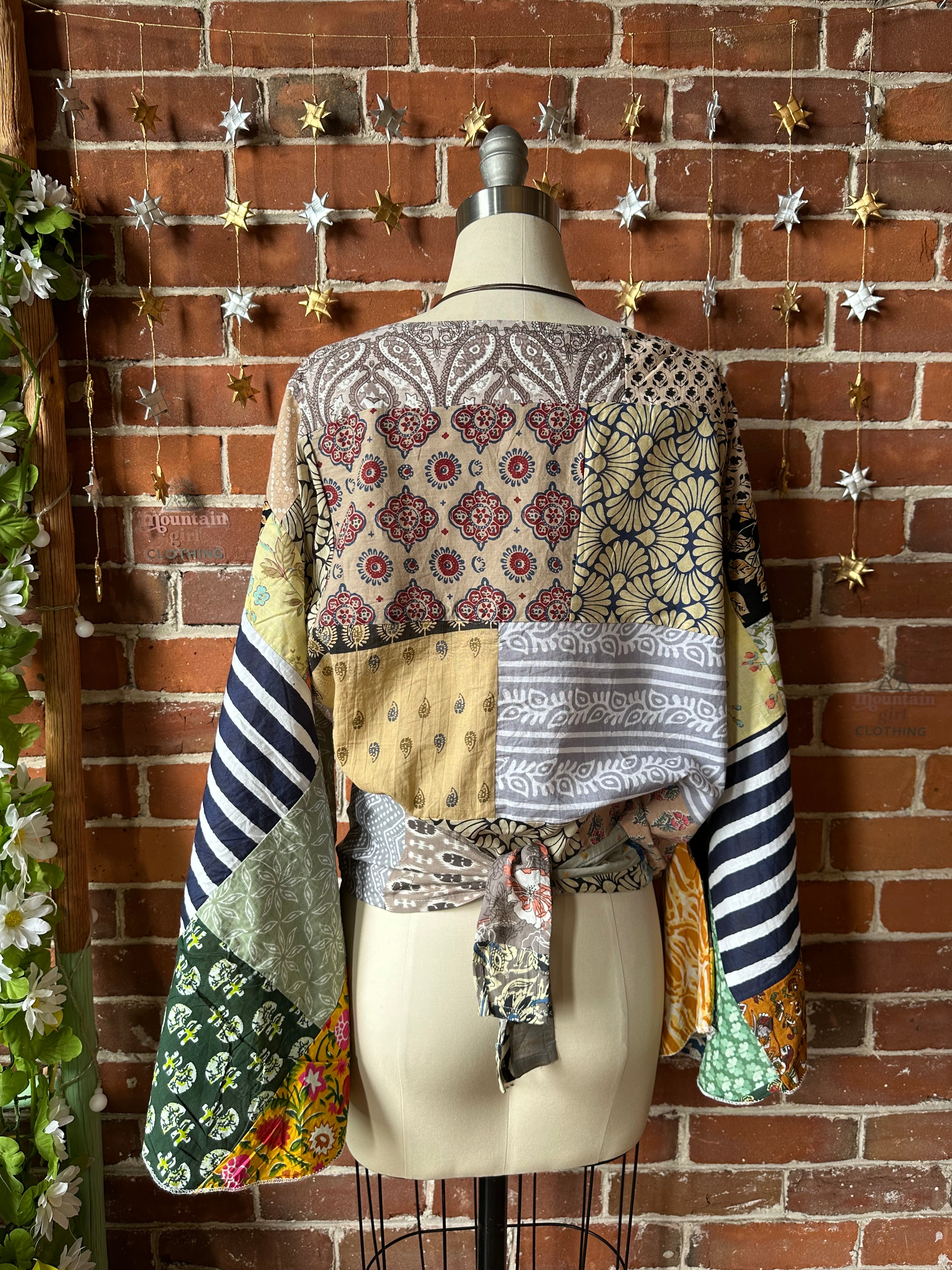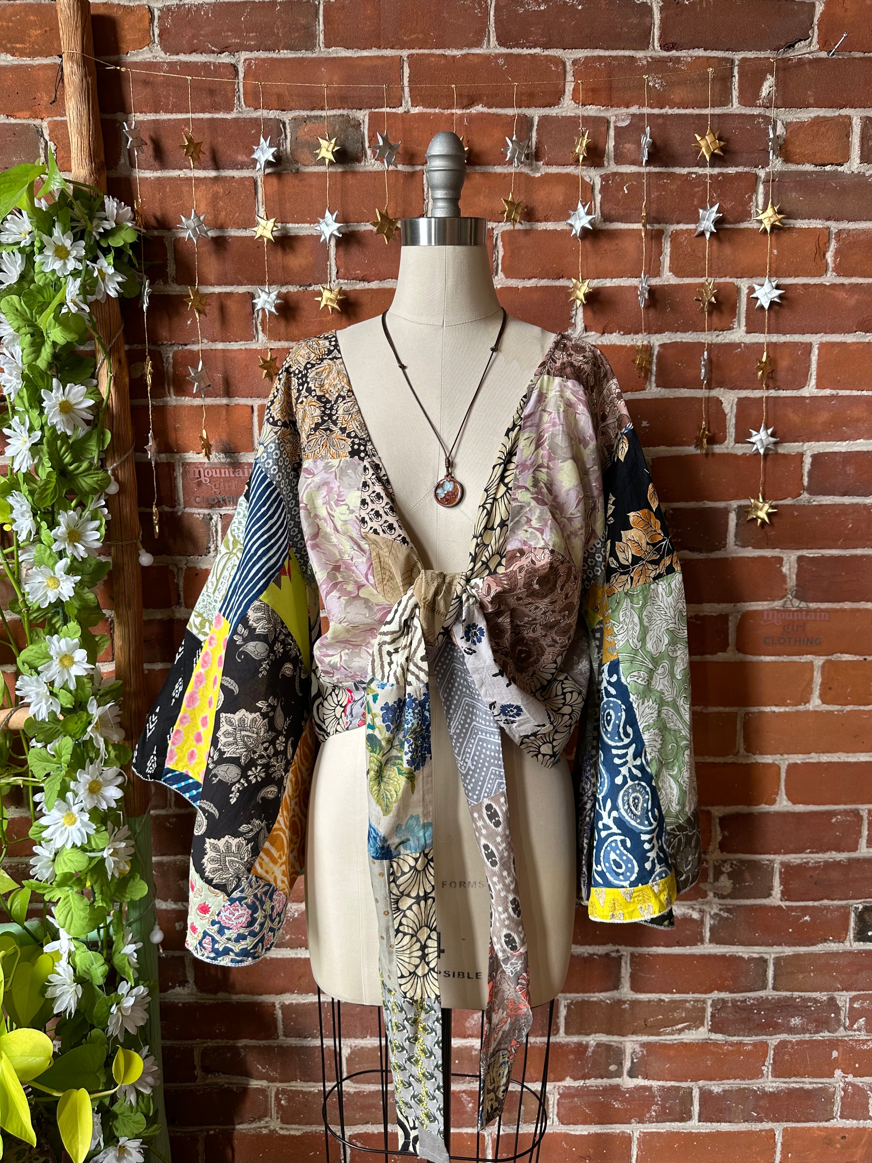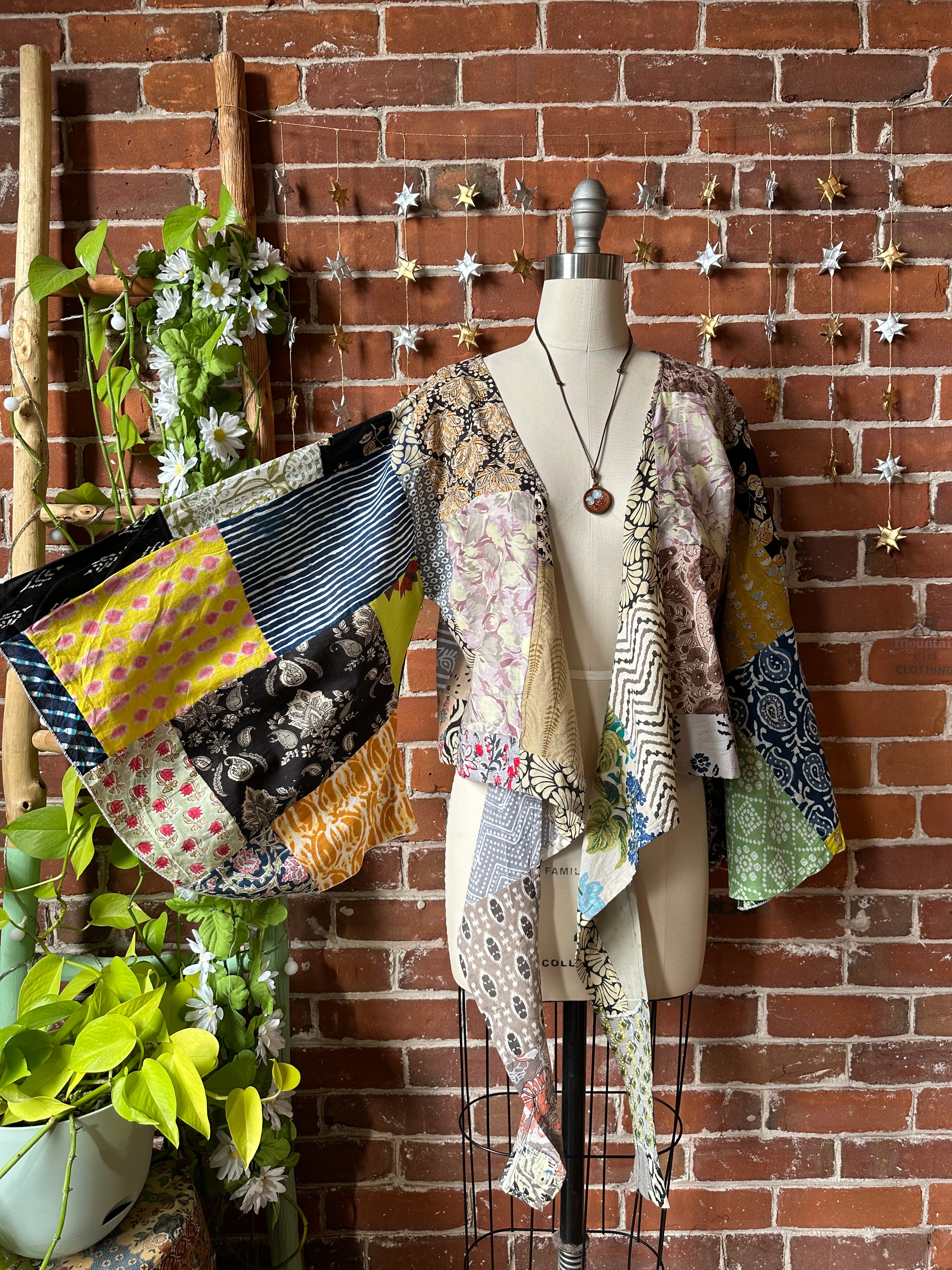 These handmade cotton patchwork wraps exudes boho style and can be worn in countless ways. Embrace the carefree, bohemian hippie vibe with this unique and timeless top. These tops can be worn in many ways, they can be worn open like kimono, tied in a knot at the back or the front or wrapped around the waist
