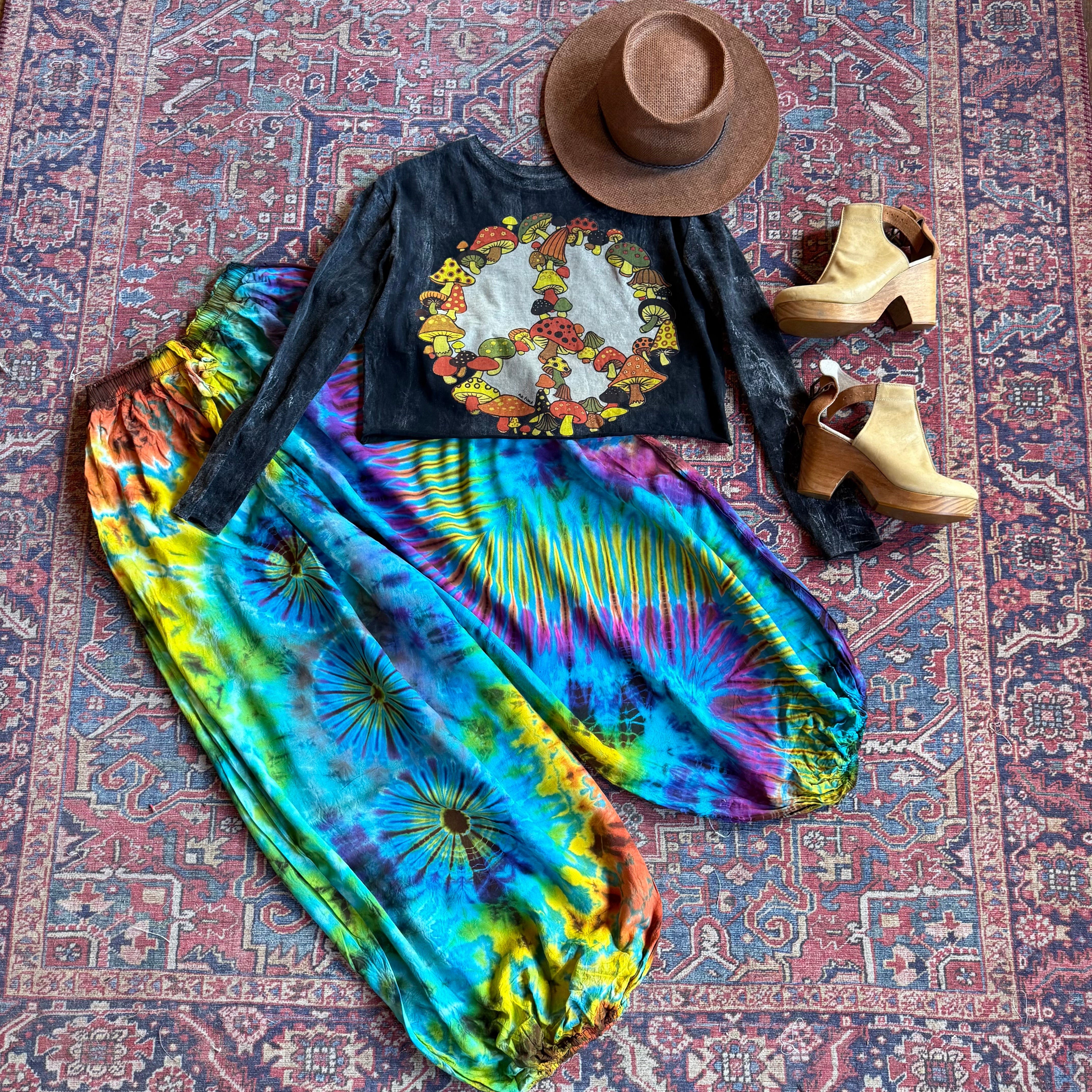 Raven Tie Dye Harem Pants -Blue/Rainbow
