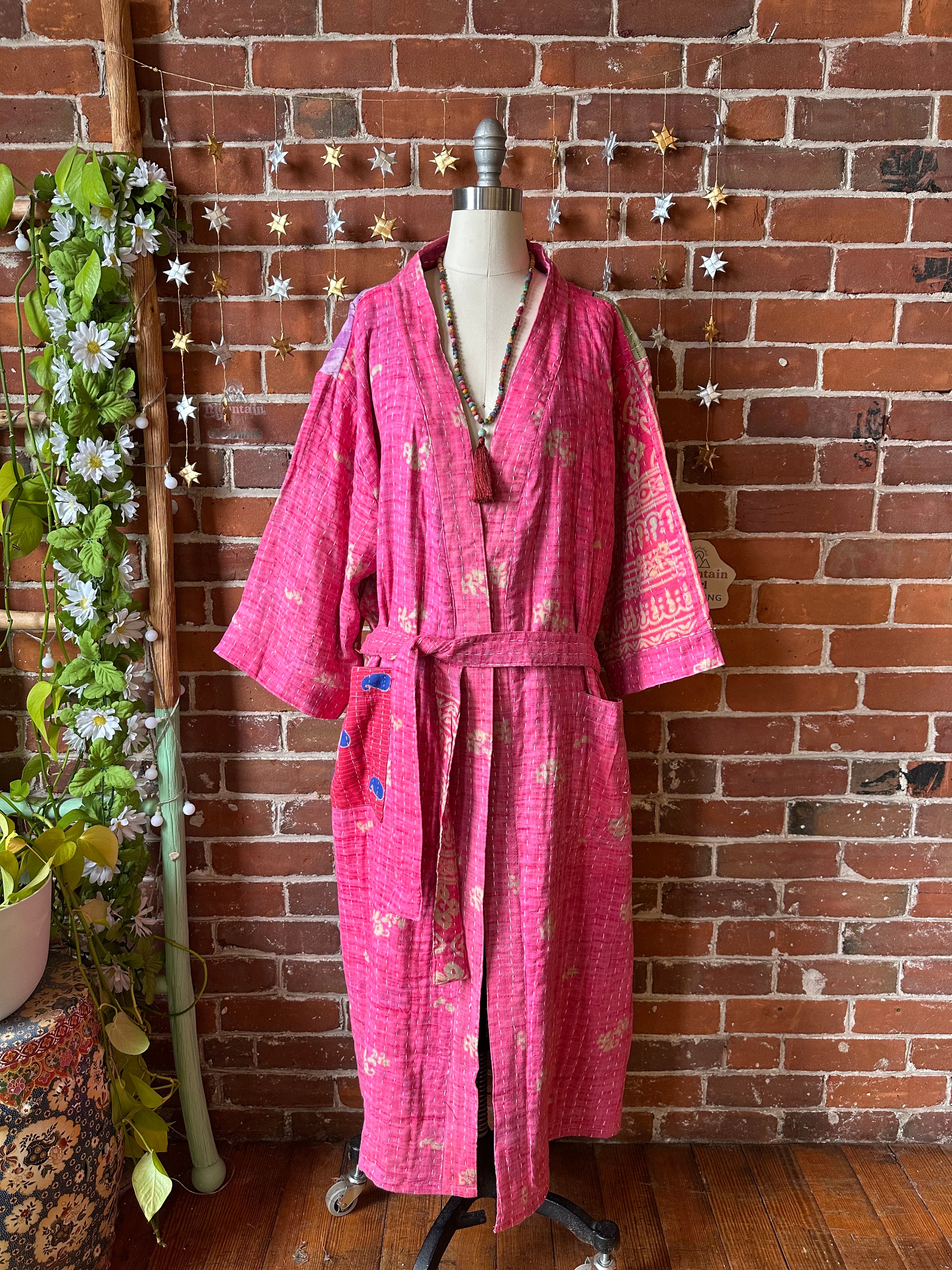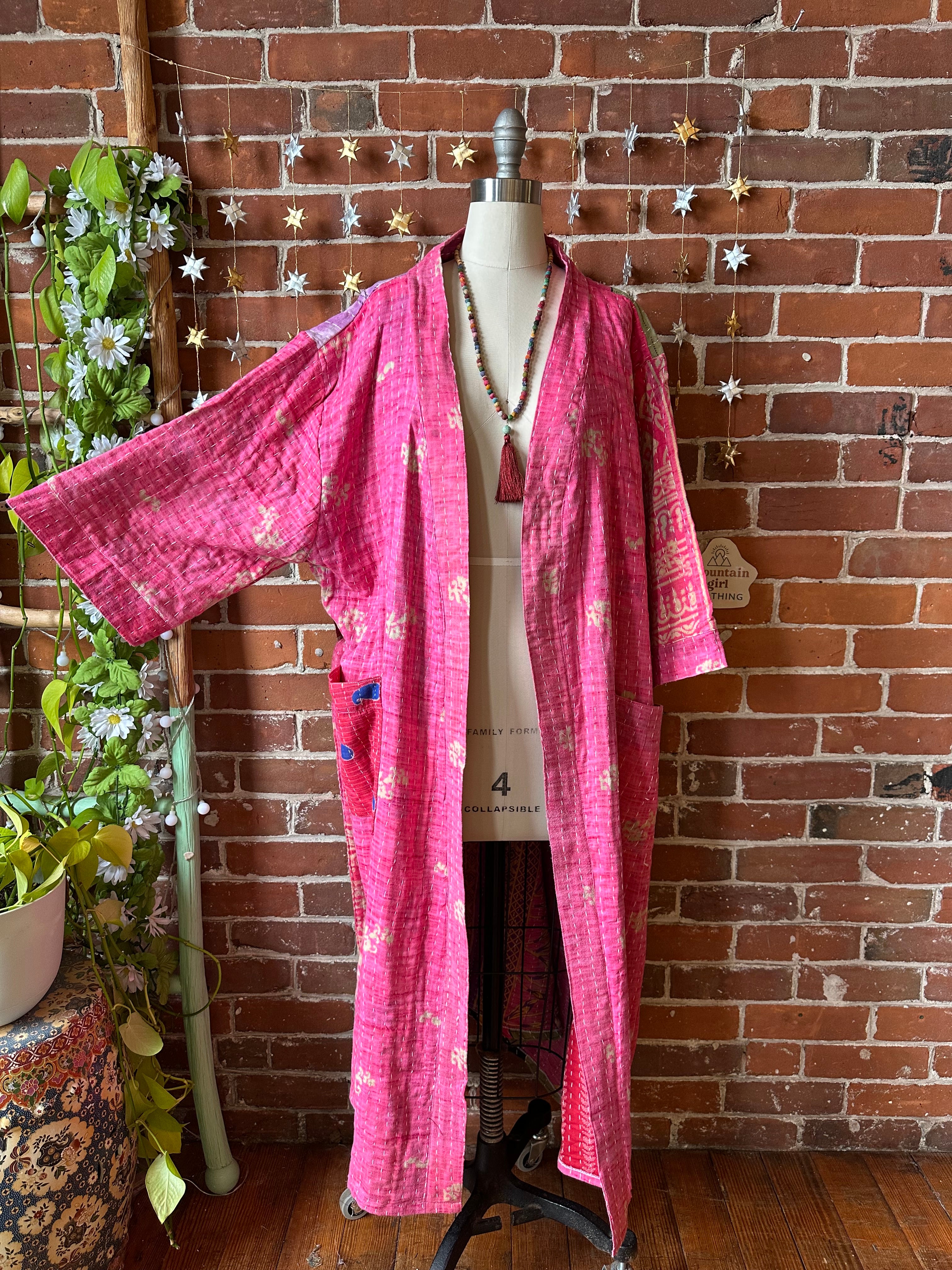 Gorgeous lightweight Kantha and pockets on each side, with belts