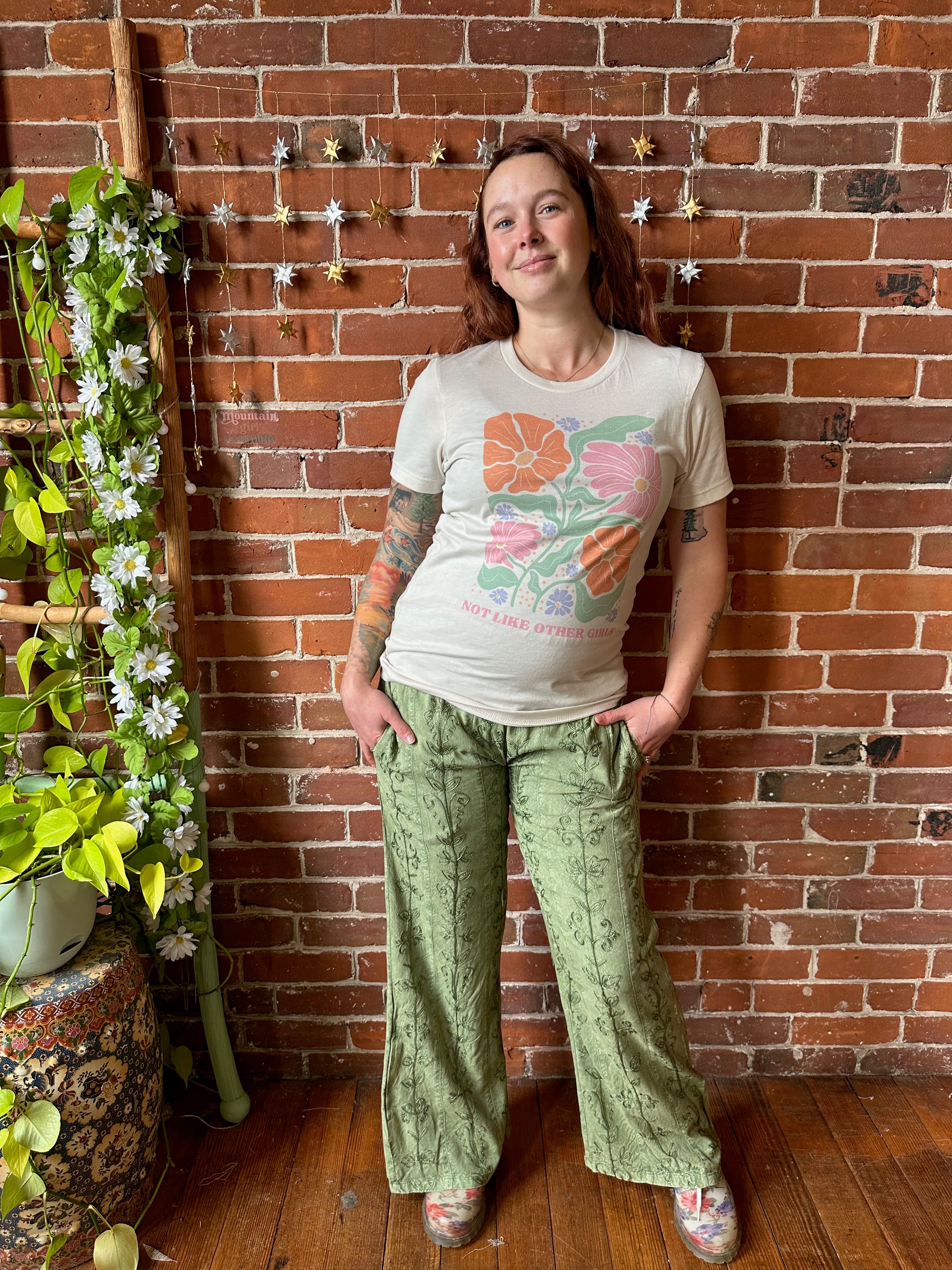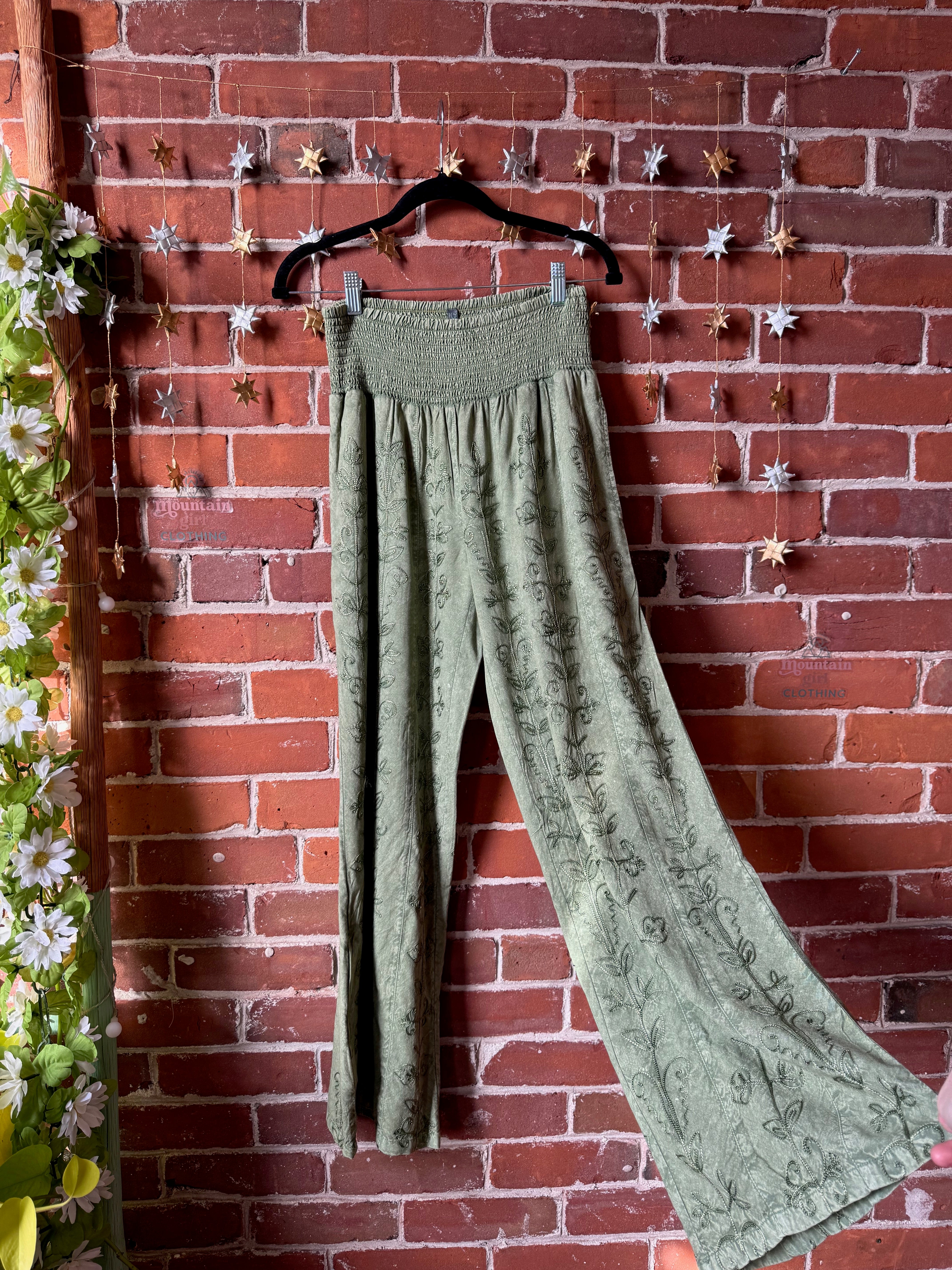 Beautiful embroidered pants with smocked waist