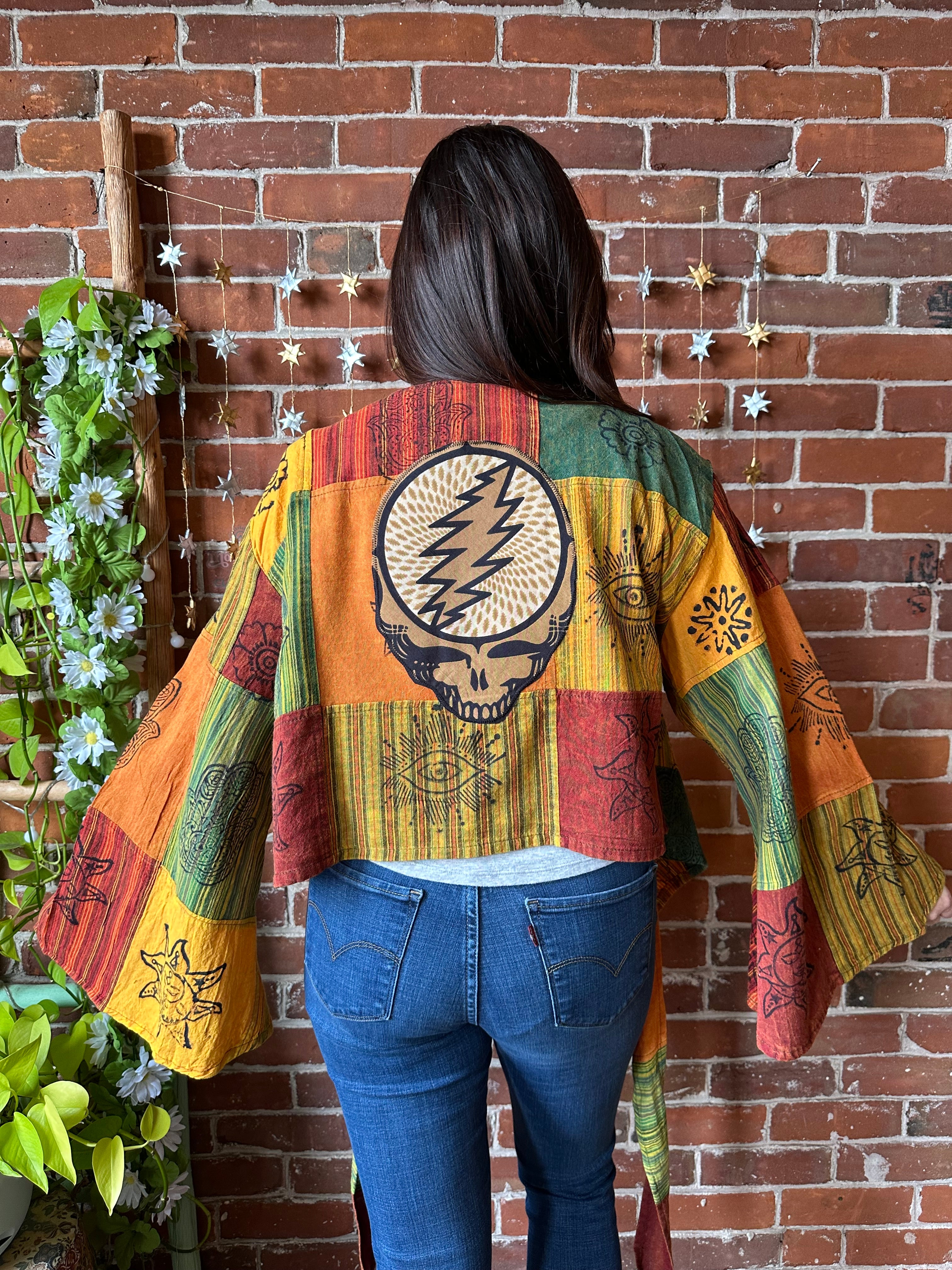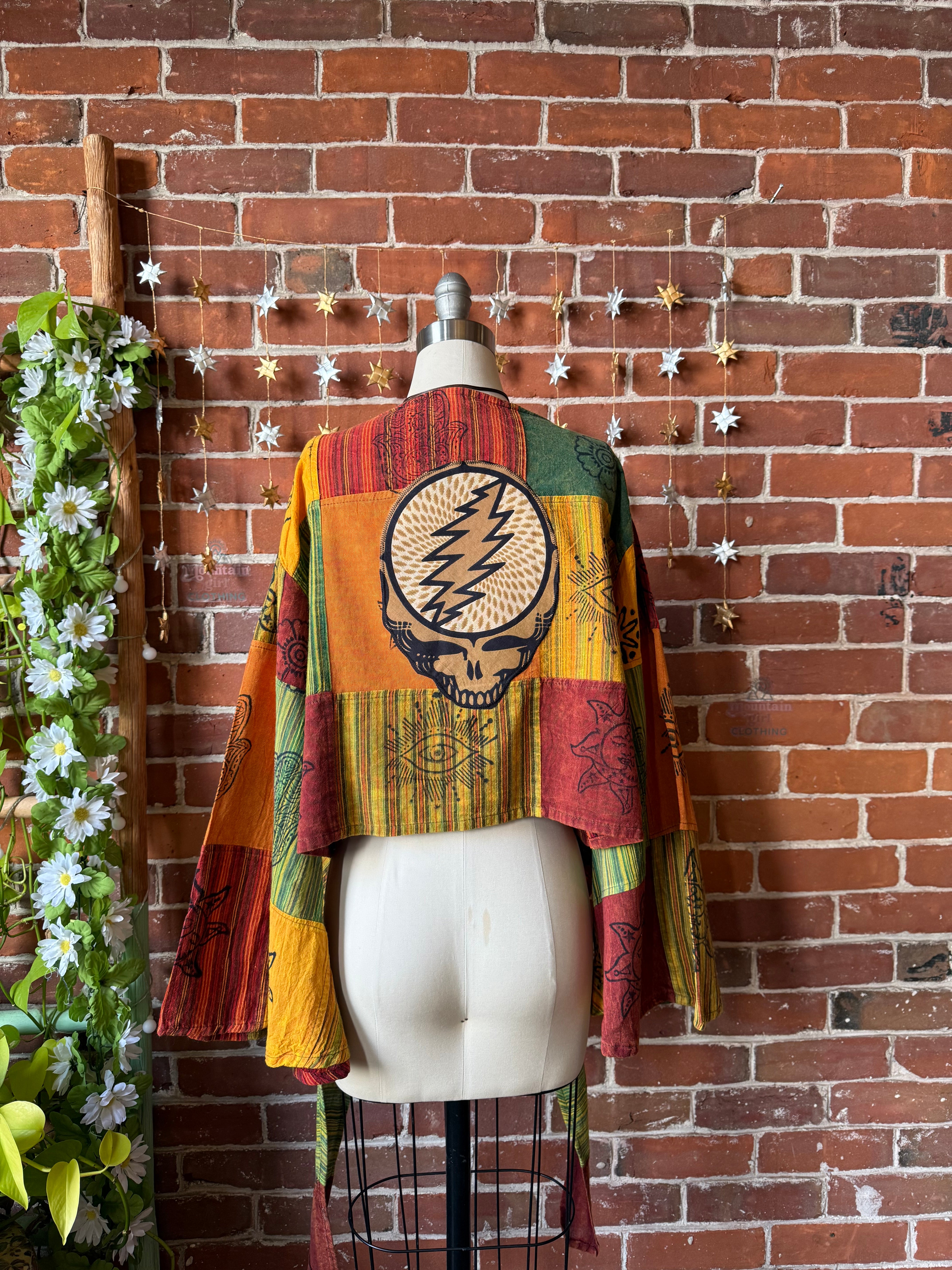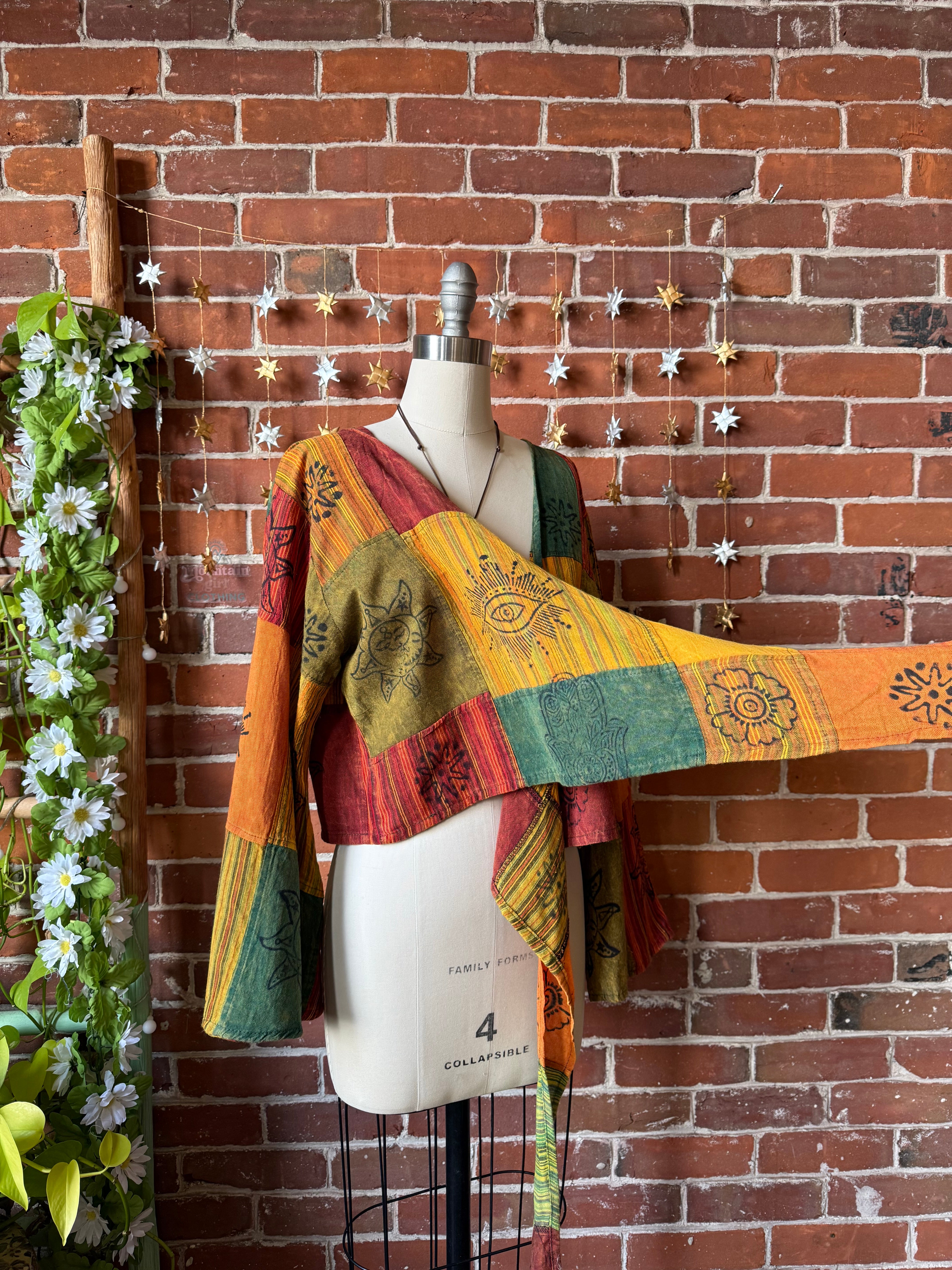 Discover this earthy patchwork versatile, timeless styling. Feel confident in this handmade top crafted with organic cotton, featuring a earth tones for a bohemian, retro look. Accent your festival fashion with this hippie crop top inspired by 90s style