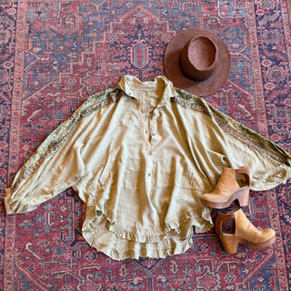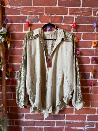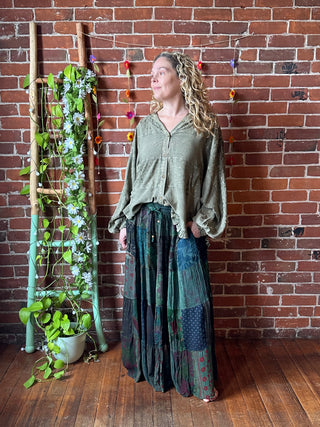 Embroidered Bohemian Spring Wide Leg Lounge Pants - Green 100% Cotton