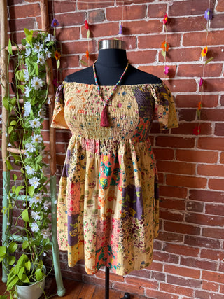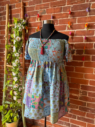 Size 14-20 Patchwork Off The Shoulder Mini Dress - Multiple Colors! 100% Cotton