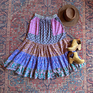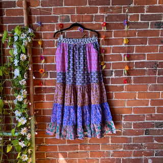Size Large/XL Recycled Saree Patchwork Fairy Cut Top / Skirt - Purple
