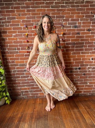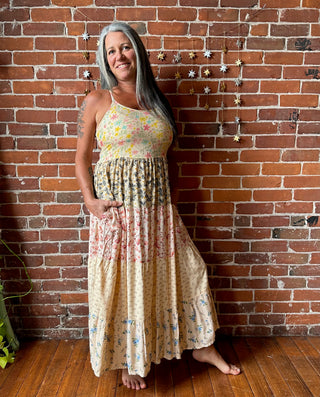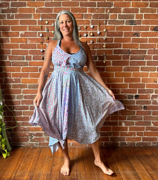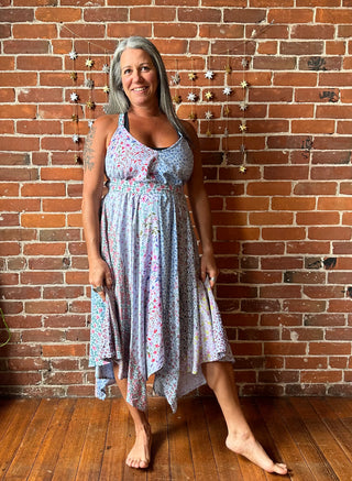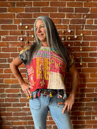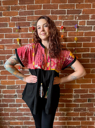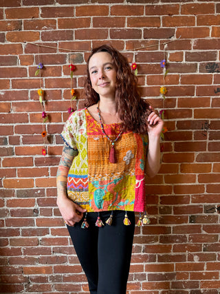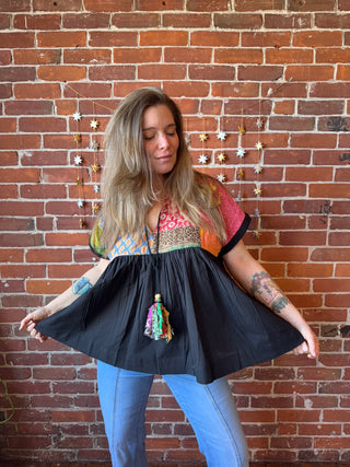 Organic Cotton Earth Print Patchwork Cropped Bell Sleeve Wrap Top
