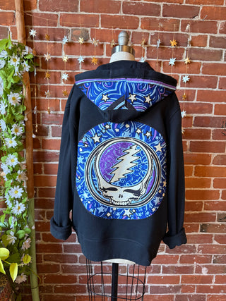 OOAK Winter Collection- Size Small Upcycled Grateful Dead Inspired Zip up Hoodie
