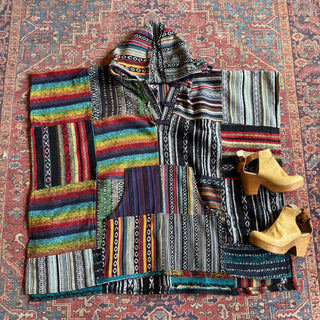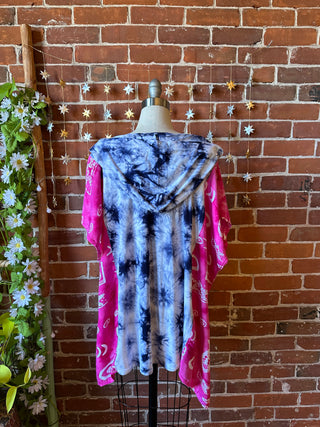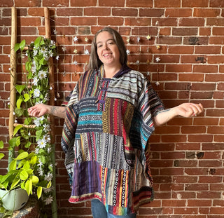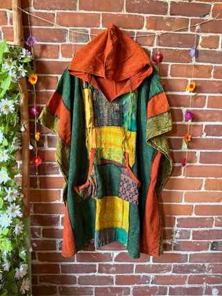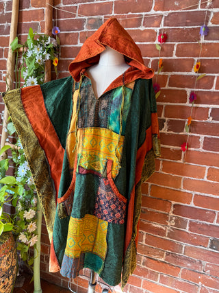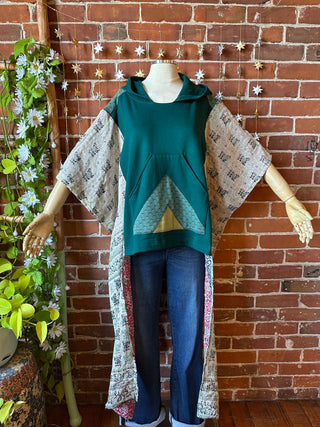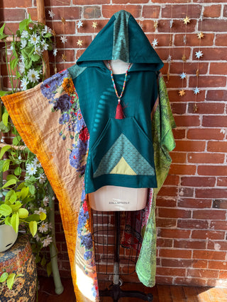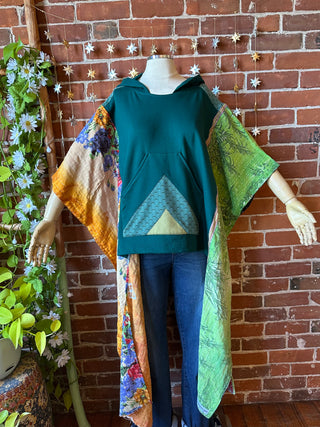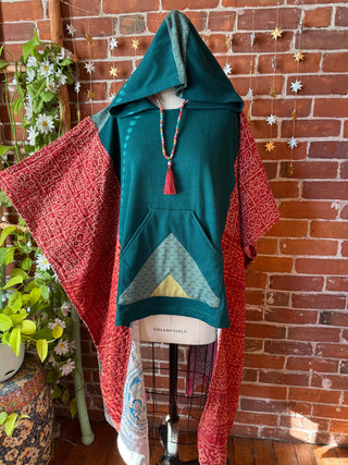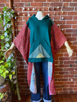 OOAK Autumn Collection- Upcycled Organic Cotton + Kantha Poncho Hi lo Hoodie