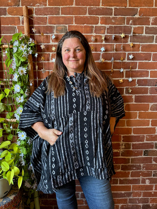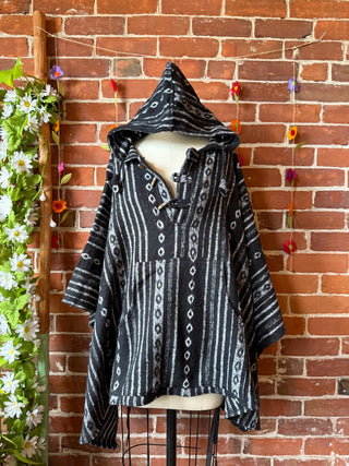 Black/White Brushed Woven 100% Cotton Hooded Poncho