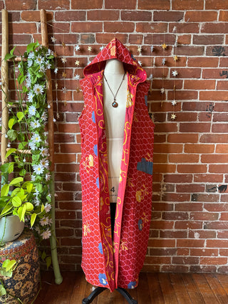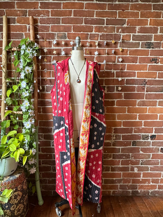 Twilight Reversible Kantha Long Hooded Duster Vest