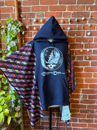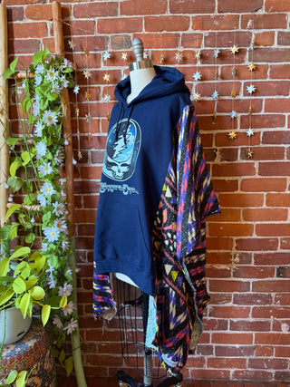 OOAK Autumn Collection- Upcycled Grateful Dead Inspired Kantha Poncho Hi lo Hoodie