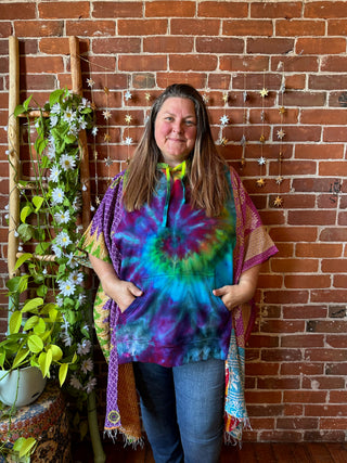 Soul Shine Maine X Mountain Girl Collab OOAK Upcycled Tie Dye Kantha hi Lo Hoodie
