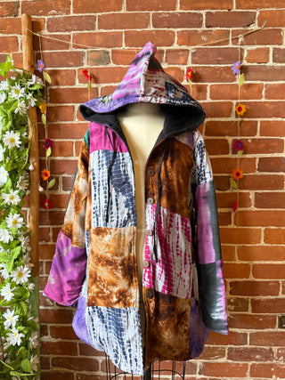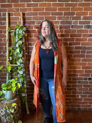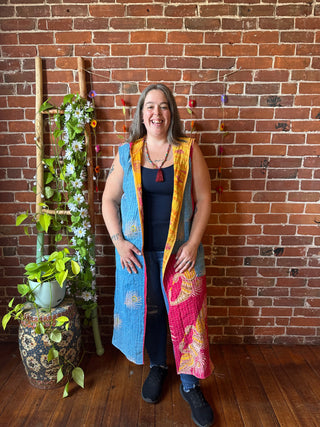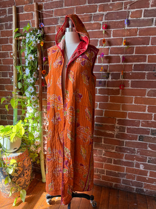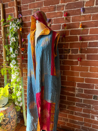 Twilight Reversible Kantha Long Hooded Duster Vest