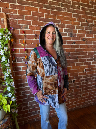 OOAK Autumn Collection- Size XS/Small Upcycled Patchwork Crochet Cut Out Hoodie Sweastshirt