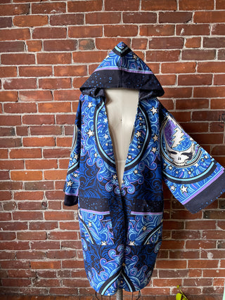 Grateful Dead Inspired Moon + Stars Celestial Tapestry Bell Sleeve Hooded Kimono