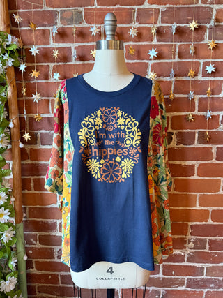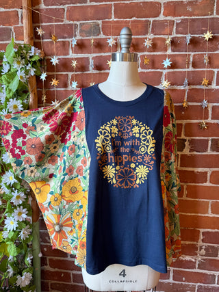 OOAK Autumn Collection- Size Medium Upcycled Hippies Retro Floral Hybrid Top