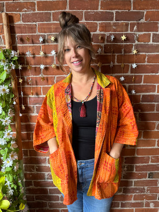 OOAK Autumn Collection - Upcycled Embroidered Butterfly Cropped Hybrid Hi Lo Kantha Hoodie