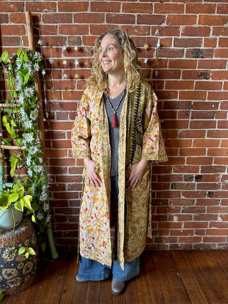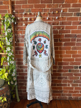 Grateful Dead Inspired Upcycled Silver Mandala Long Tapestry Robe Kimono with Pockets and Belt