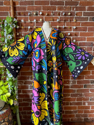OOAK Autumn Collection - Upcycled Grateful Dead Inspired Flower Bear Bell Sleeve Robe
