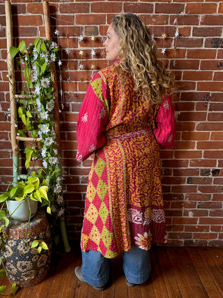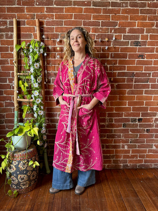 Maroon Mandala Long Tapestry Robe Kimono w/ Pockets + Belt - Fair Trade Made