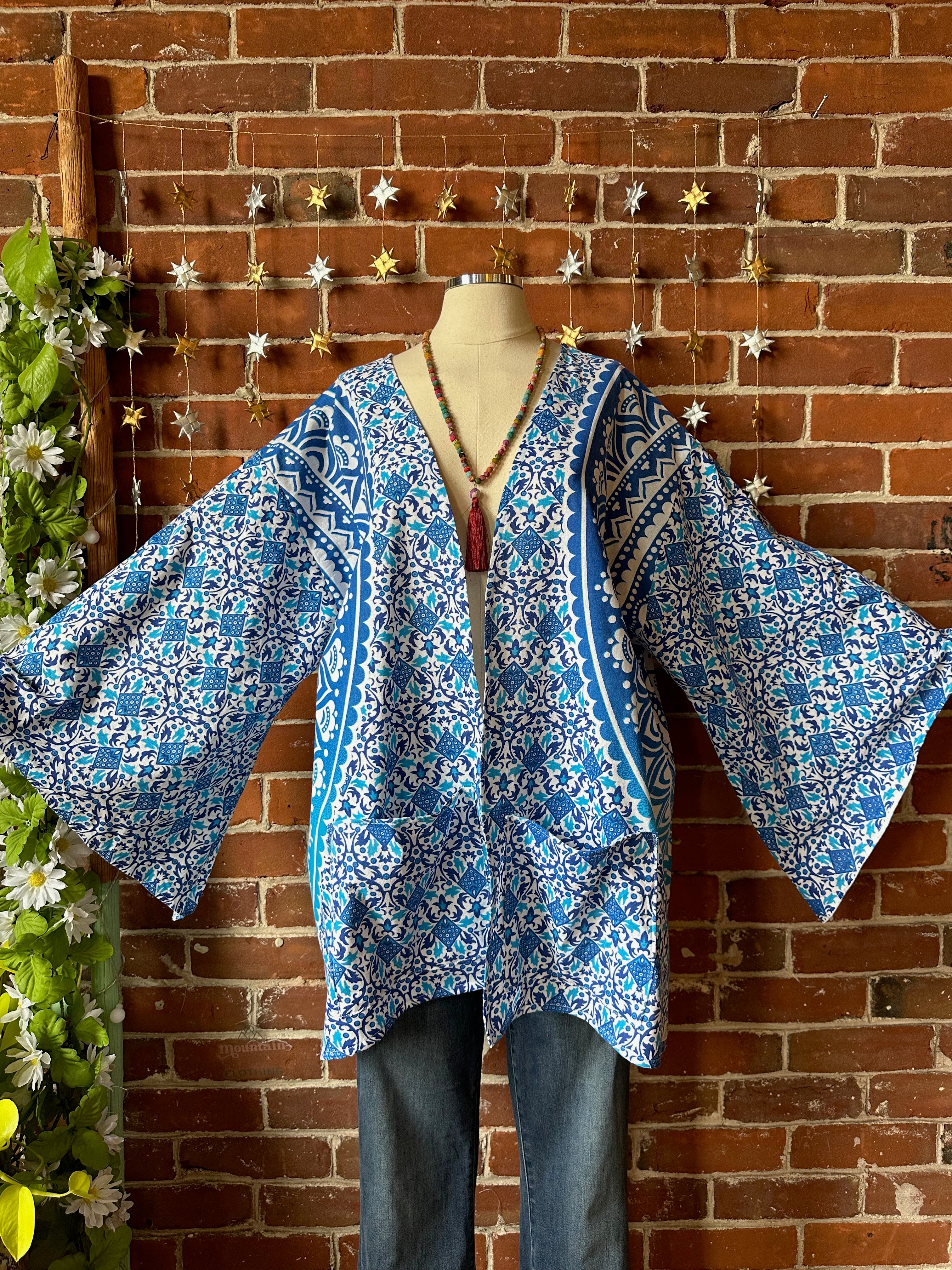 tapestry woven cotton kimono/robe with pockets and bell sleeves