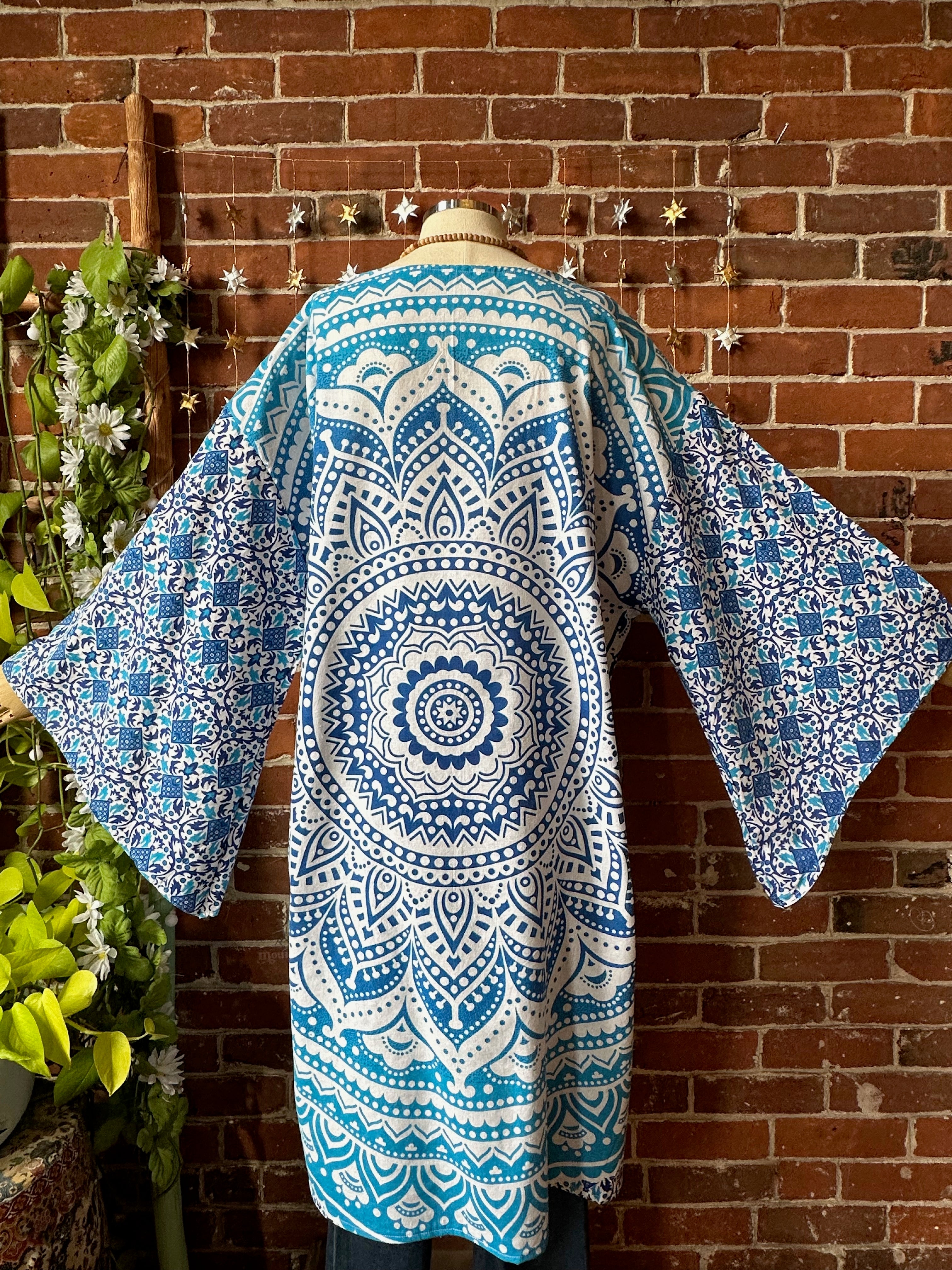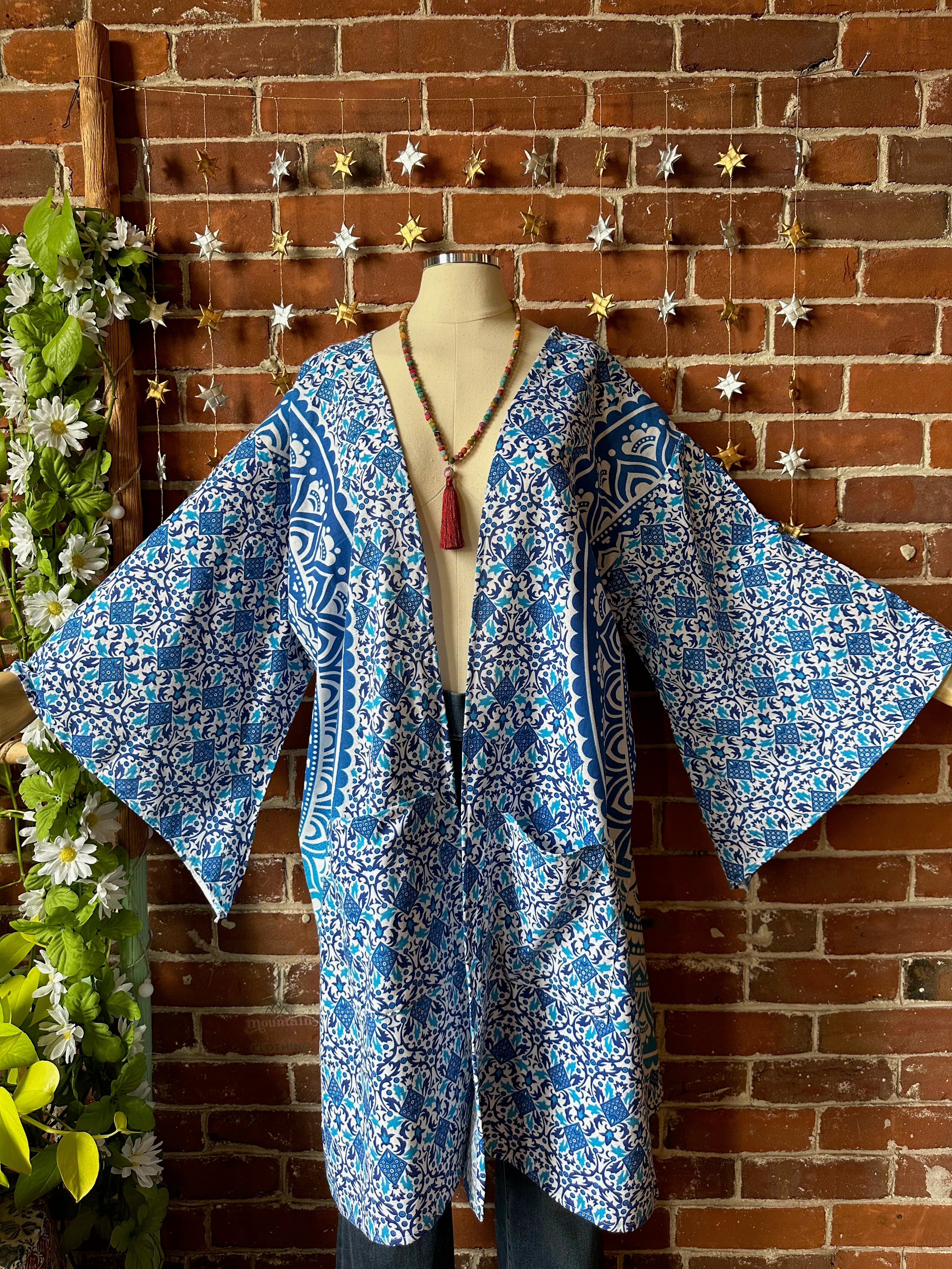 tapestry woven cotton kimono/robe with pockets and bell sleeves