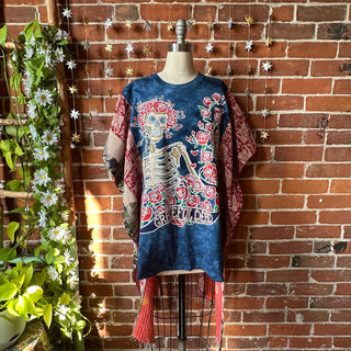OOAK Winter Collection - Grateful Dead Inspired Boho Kantha Hi Lo Poncho Top