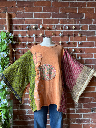 OOAK Autumn Collection - Upcycled Flower Patchwork Trapeze Style Bell Sleeve Kantha Top 🌼