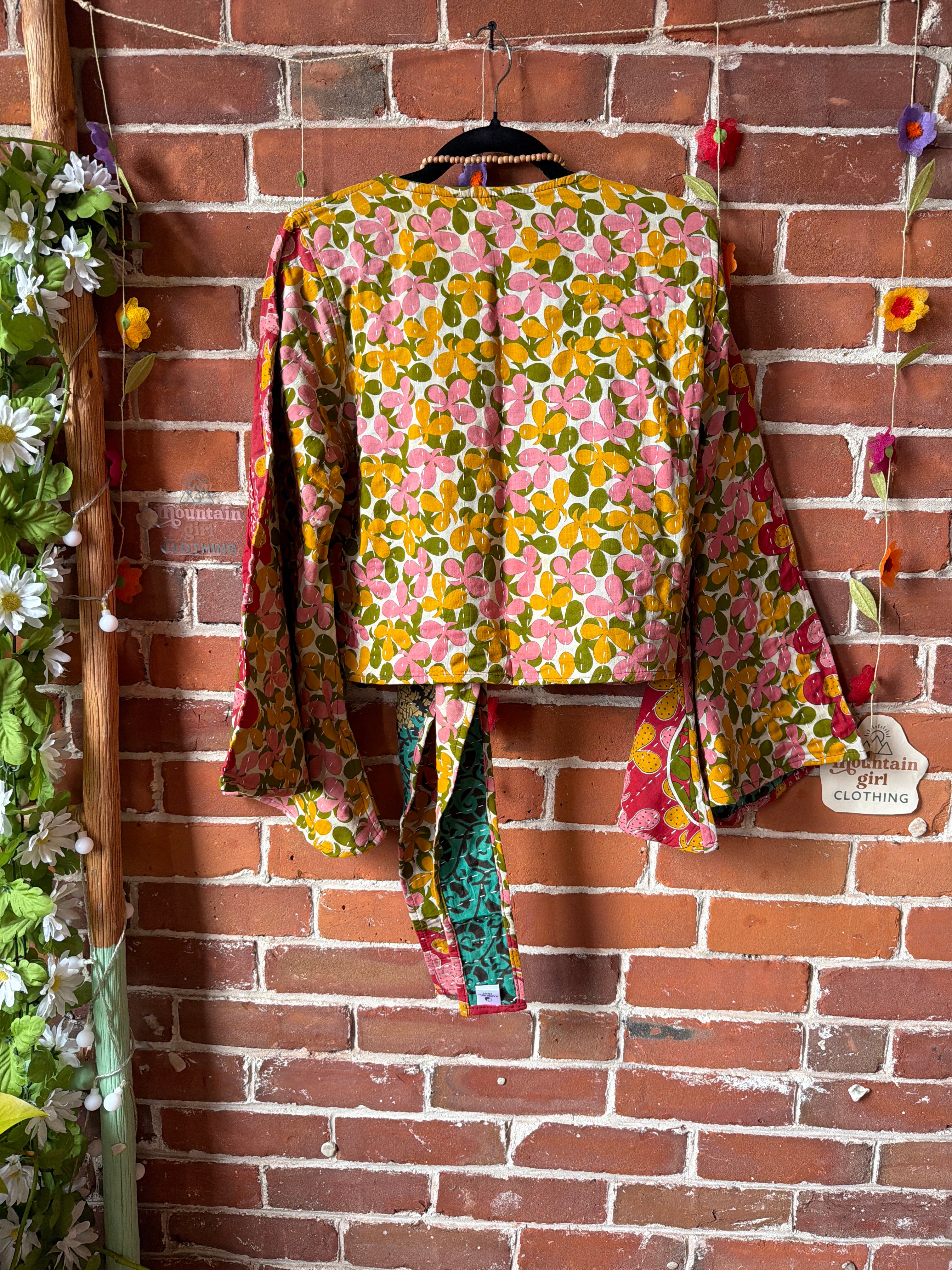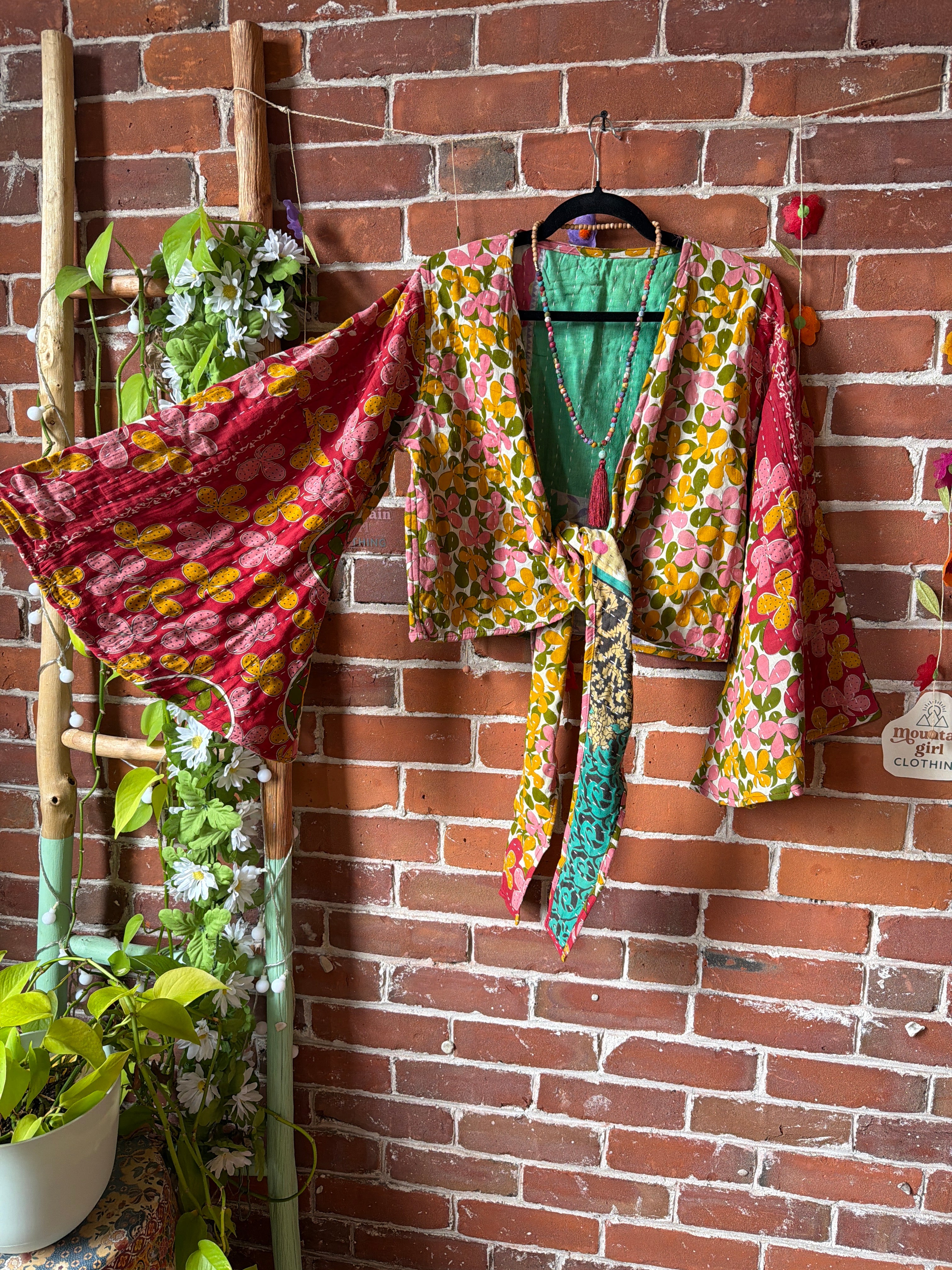 This handmade Vintage Kantha Wrap Top exudes boho style and can be worn in countless ways. Embrace the carefree, bohemian hippie vibe with this unique and timeless top. These tops can be worn in many ways, they can be worn open like kimono, tied in a knot at the back or the front or wrapped around the waist . Plus it is reversible ...! Two tops in one!