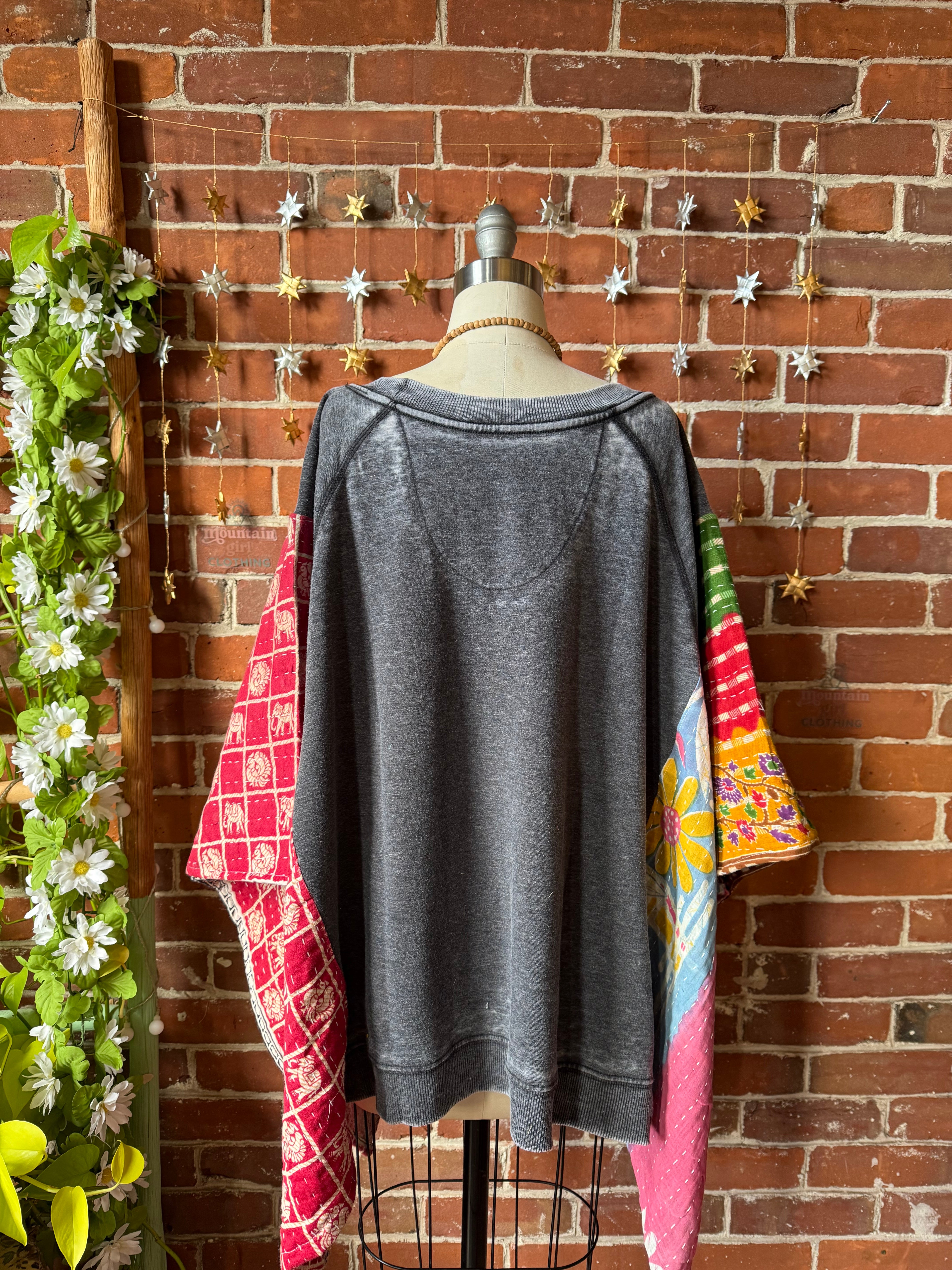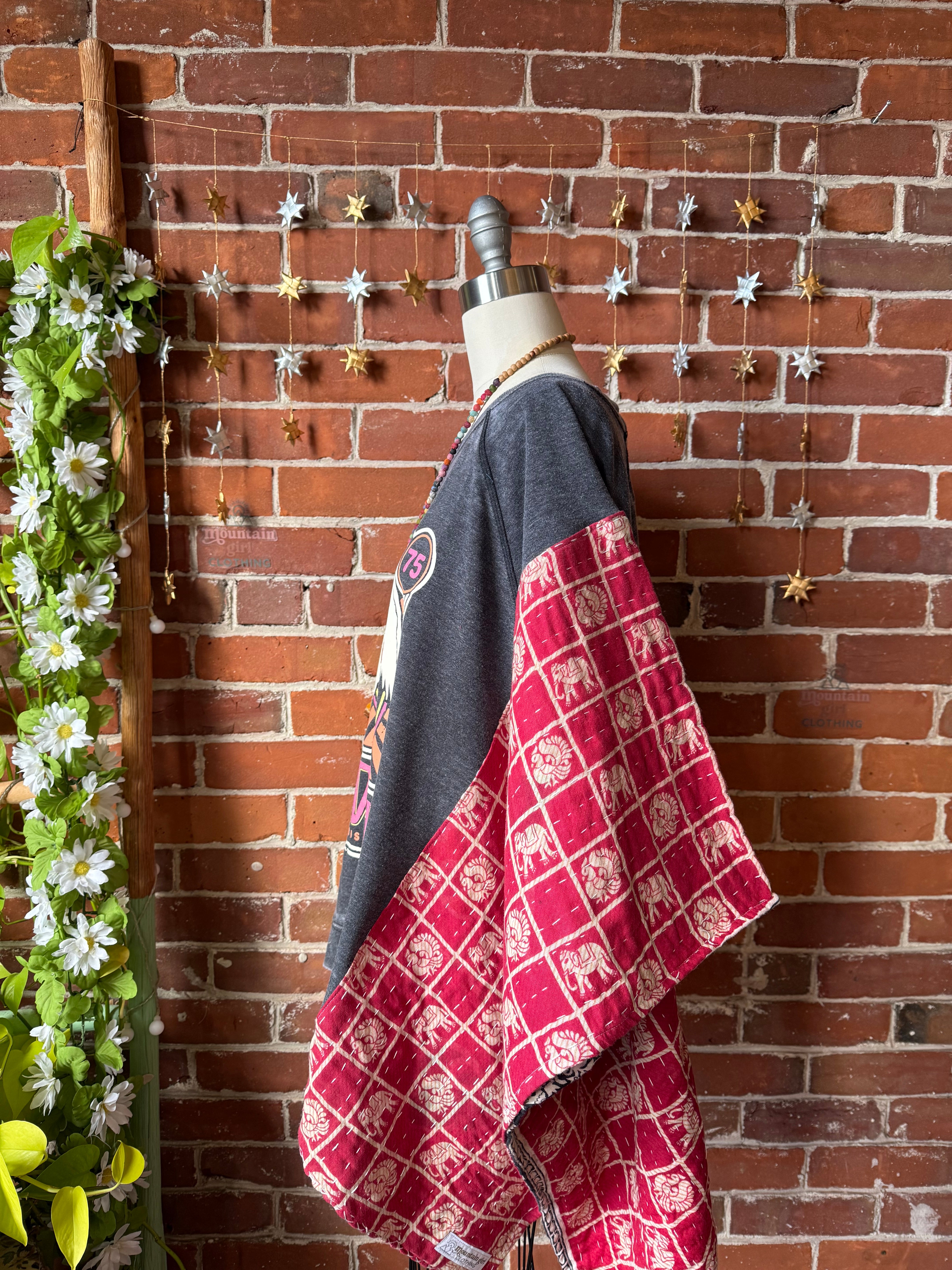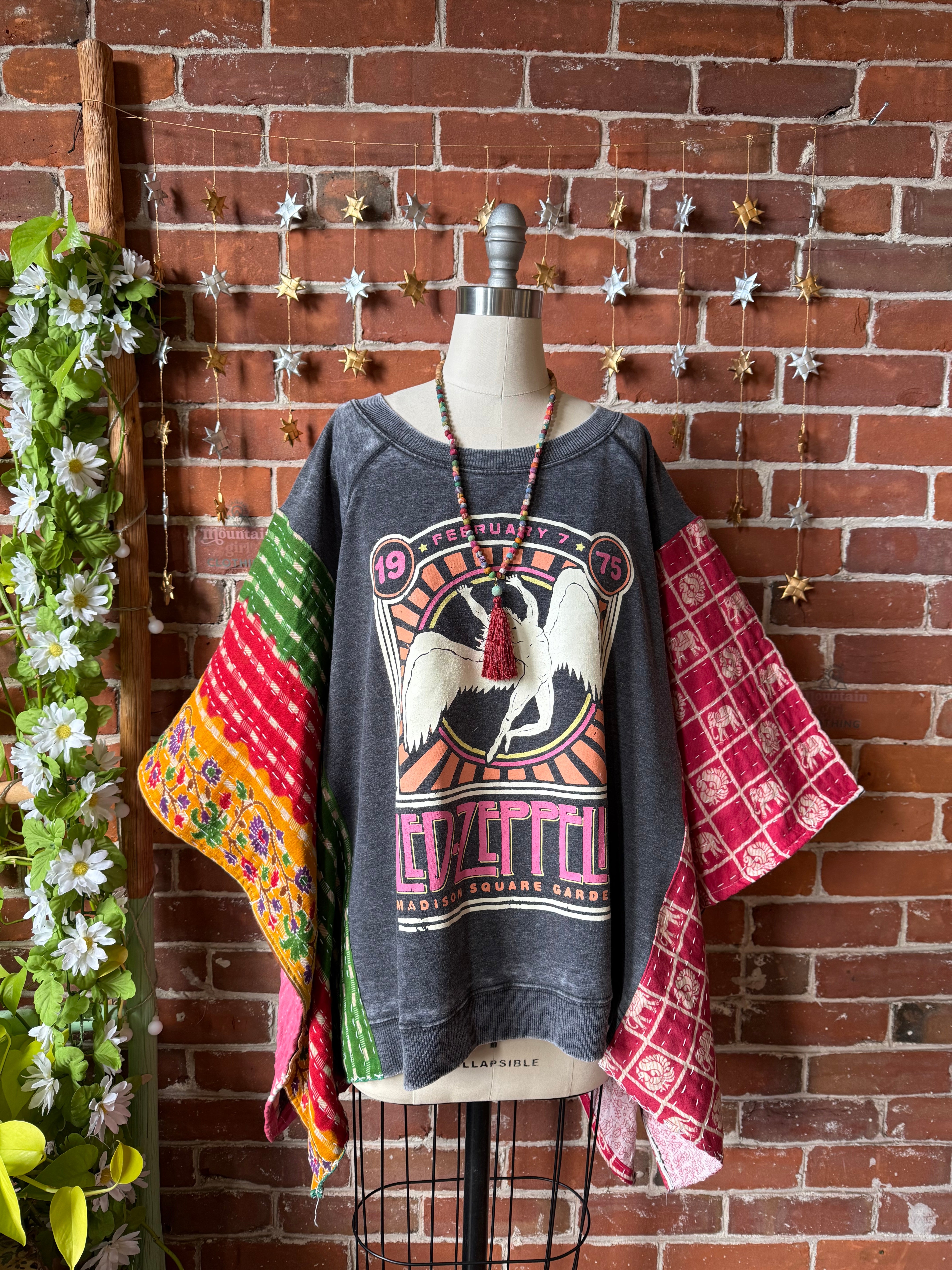 OOAK Autumn Collection- Upcycled Led Zeppelin Inspired Kantha Poncho Sweatshirt