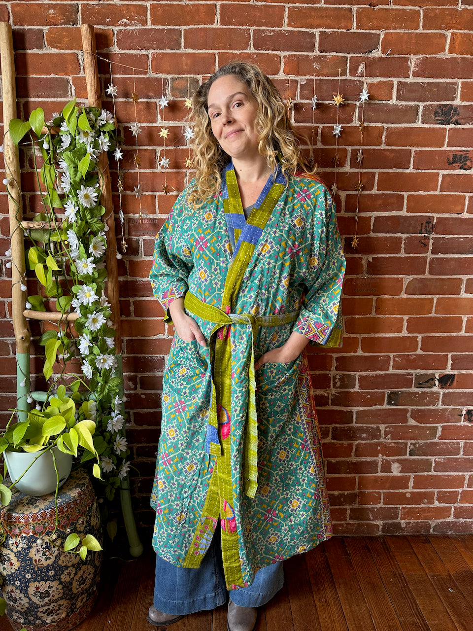 Gorgeous lightweight Kantha and pockets on each side, with belts
