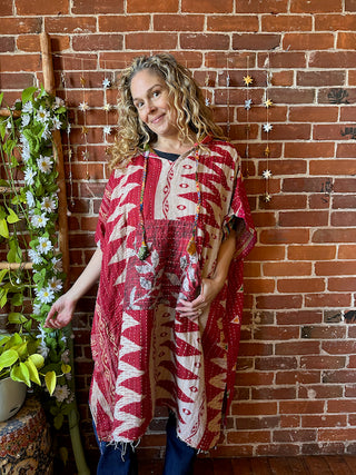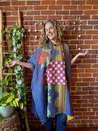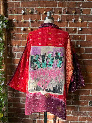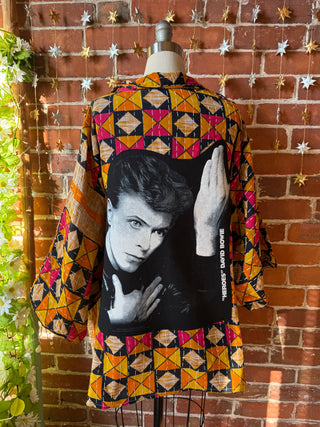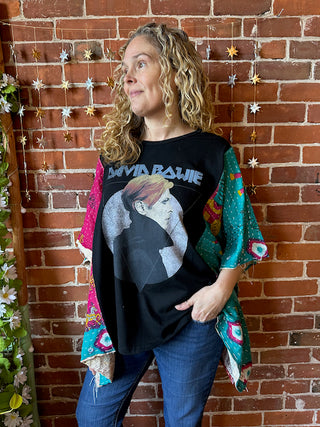 OOAK Autumn Collection- Upcycled David Bowie Inspired Cropped Kantha Poncho Tee