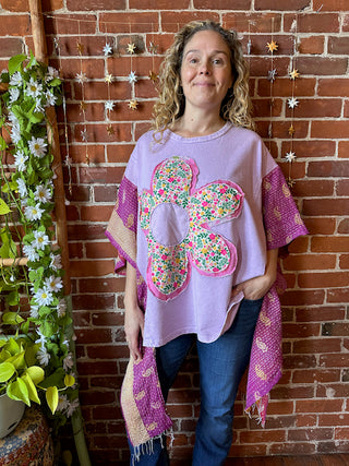 OOAK Autumn Collection - Upcycled Flower Patchwork Hi Lo Kantha Poncho Top 🌼