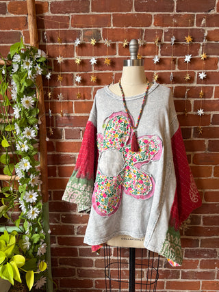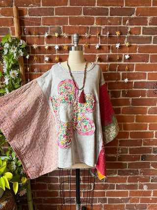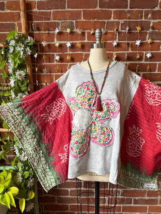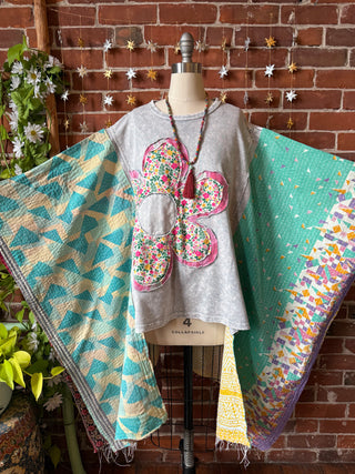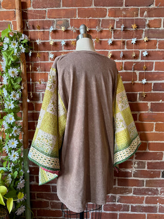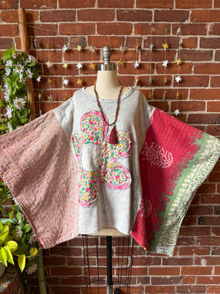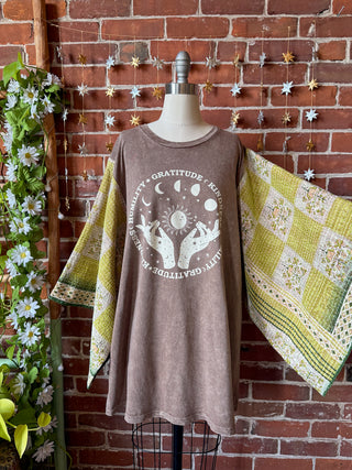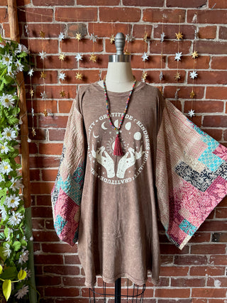 OOAK Winter Collection - Size 2XL Upcycled Gratitude Kantha Bell Sleeve T-shirt