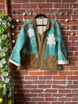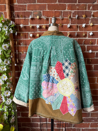 OOAK Winter Collection - Oversized Upcycled Quilted Patchwork Jade Paisley Jacket