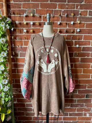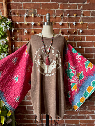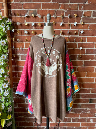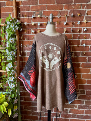 OOAK Winter Collection - Size 3XL Upcycled Gratitude Kantha Bell Sleeve T-shirt