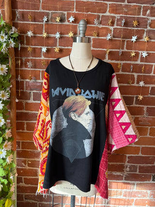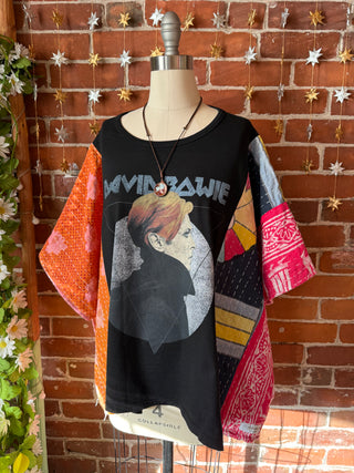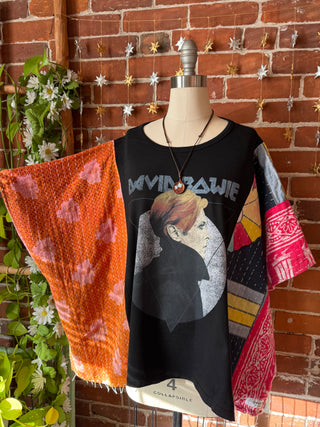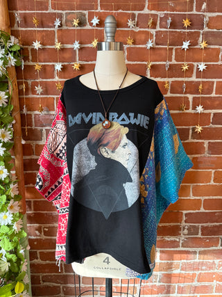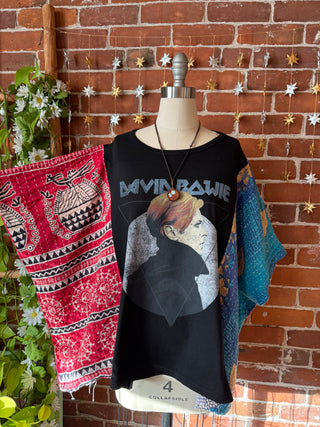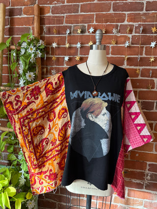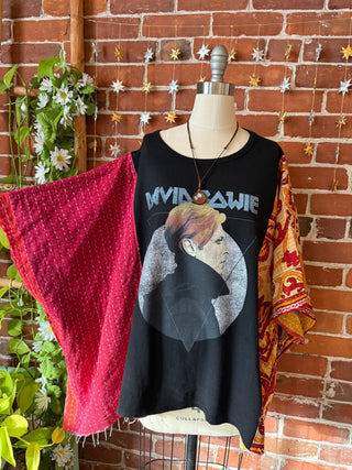 OOAK Autumn Collection- Upcycled David Bowie Inspired Cropped Kantha Poncho Tee