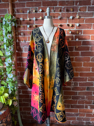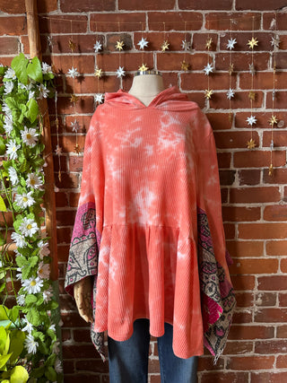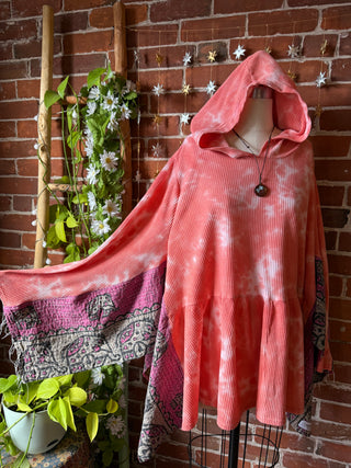 OOAK Autumn Collection - Upcycled Flower Patchwork Hi Lo Tie Dye Poncho Top 🌼