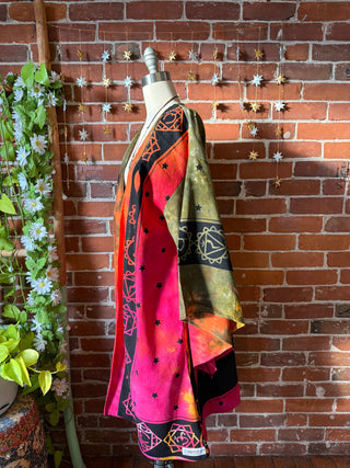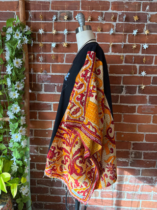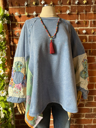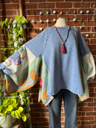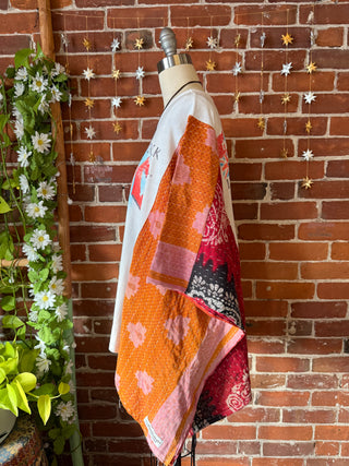OOAK Autumn Collection- Birdsong Kantha Wing Style Flower Patch Poncho Sweatshirt