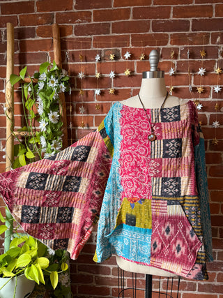 OOAK Autumn Collection - Upcycled Flower Patchwork Hi Lo Kantha Poncho Top 🌼
