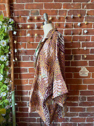 OOAK Winter Collection- Upcycled Silk Patchwork Tie Dye Jimi Hendrix Inspired Hi Lo Poncho Top