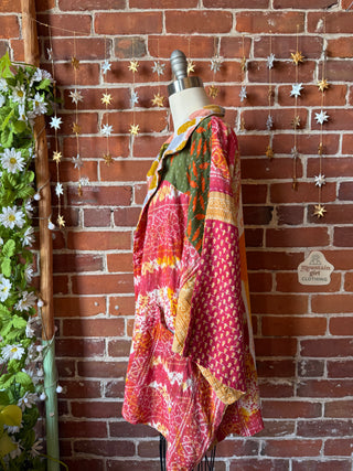 OOAK Winter Collection- Upcycled Silk Patchwork Tie Dye Bob Marley Inspired Hi Lo Poncho Top