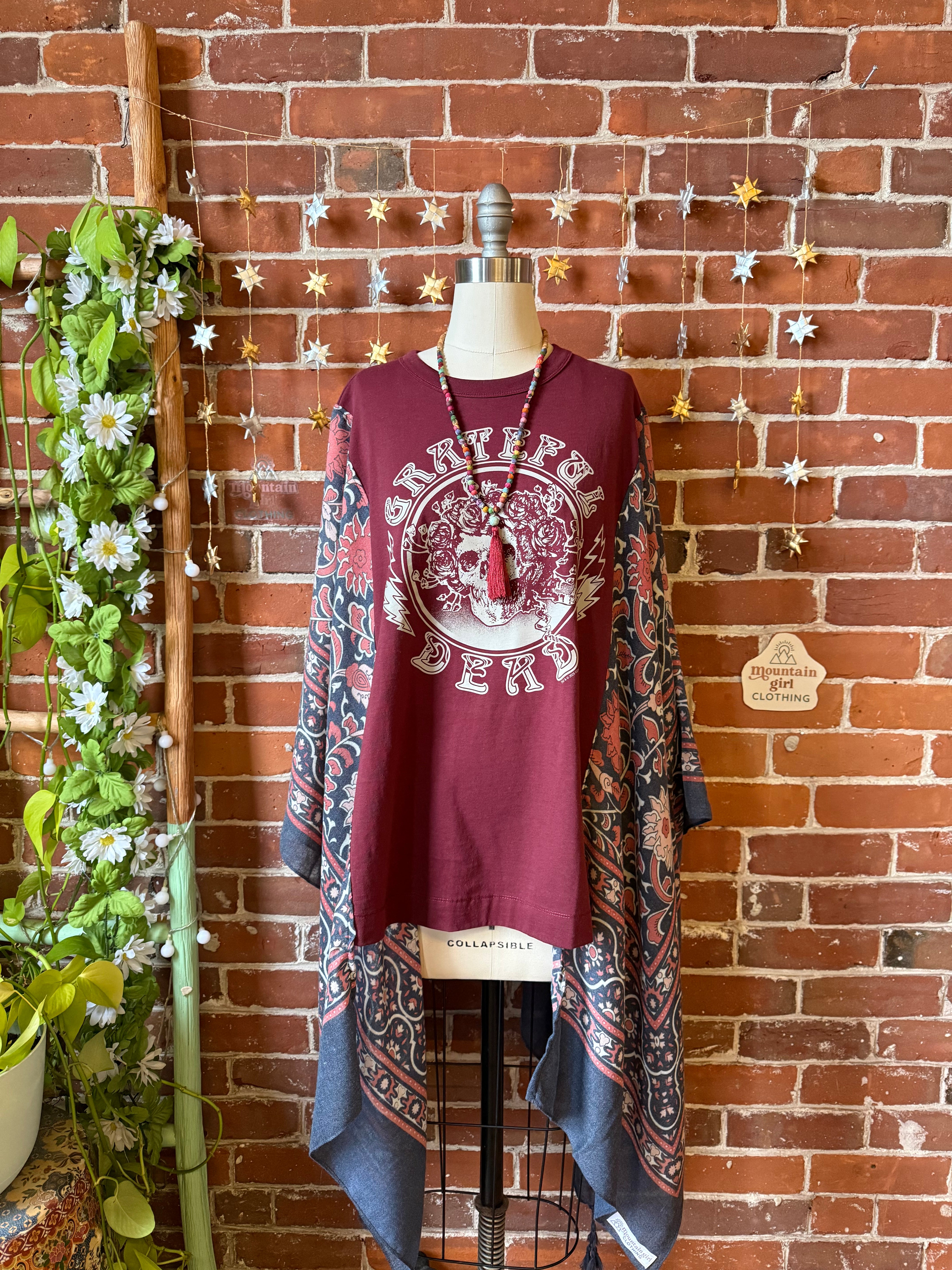 Grateful Dead Burgundy Navy Boho Hi Lo Poncho Top