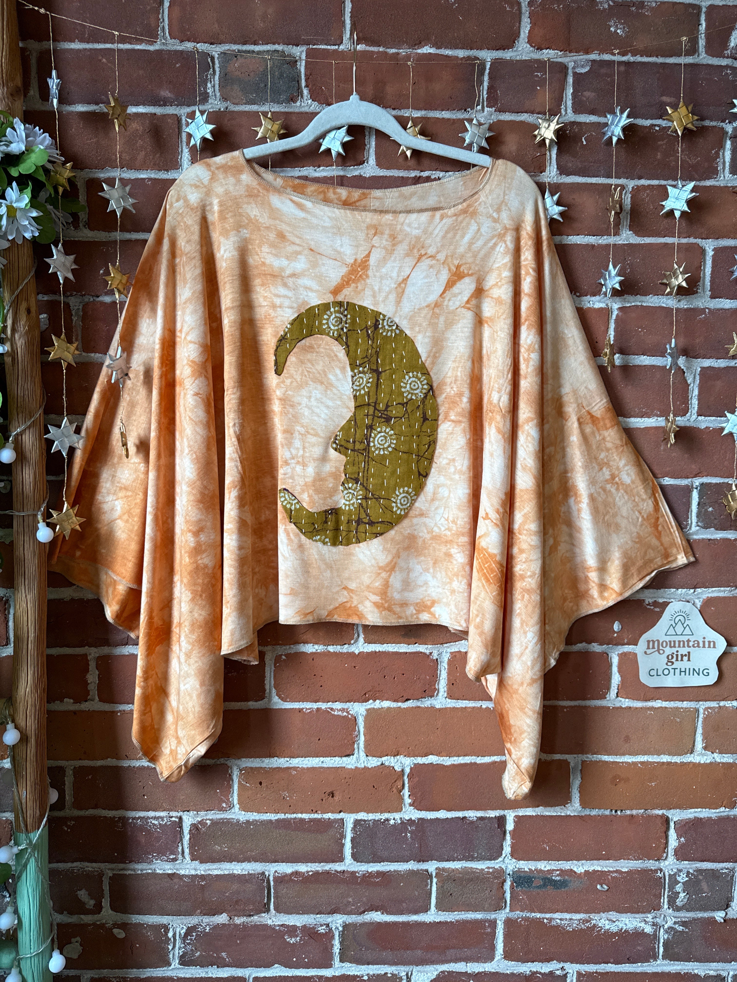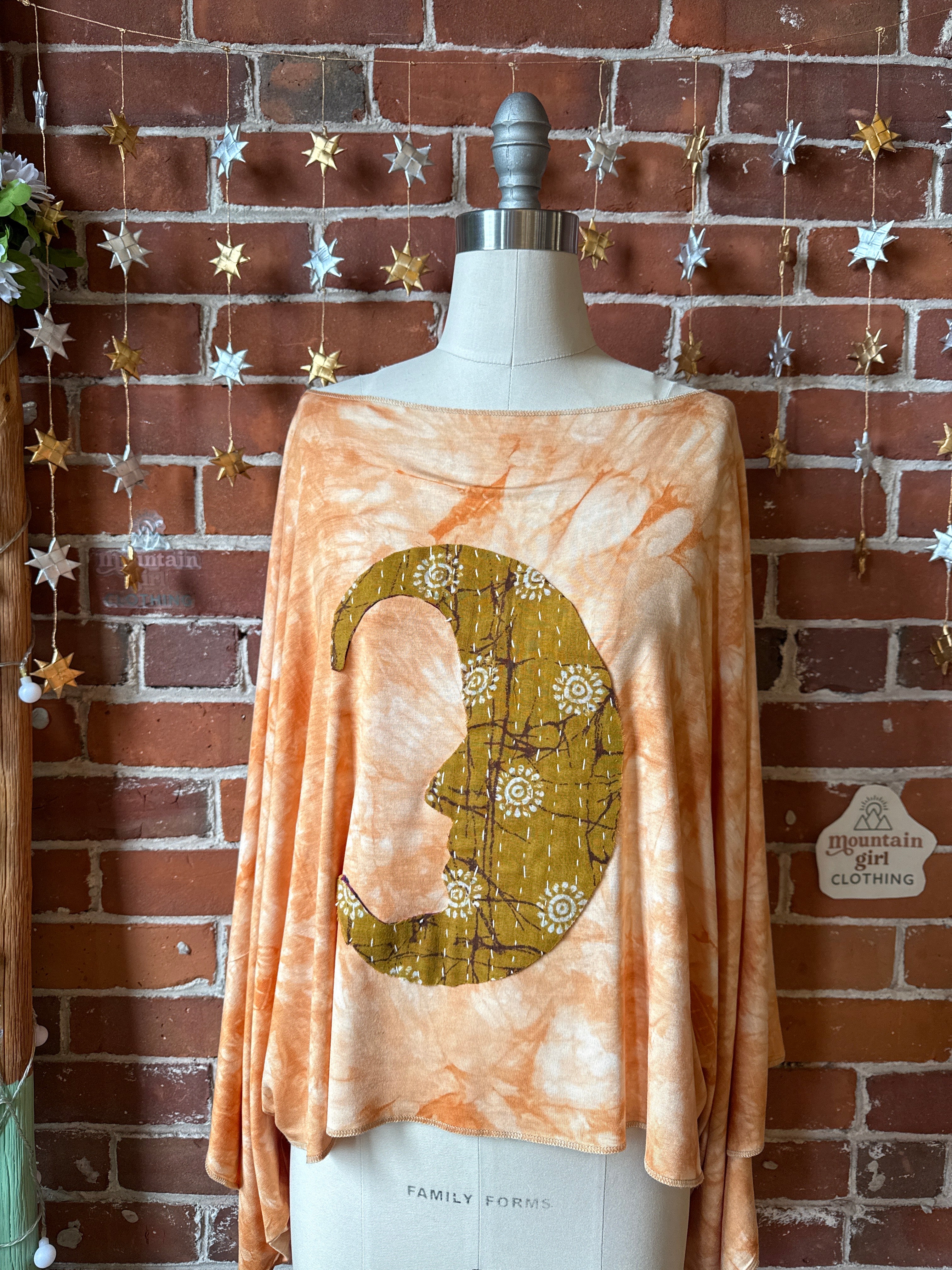 One of a kind kantha crescent moon on the front.