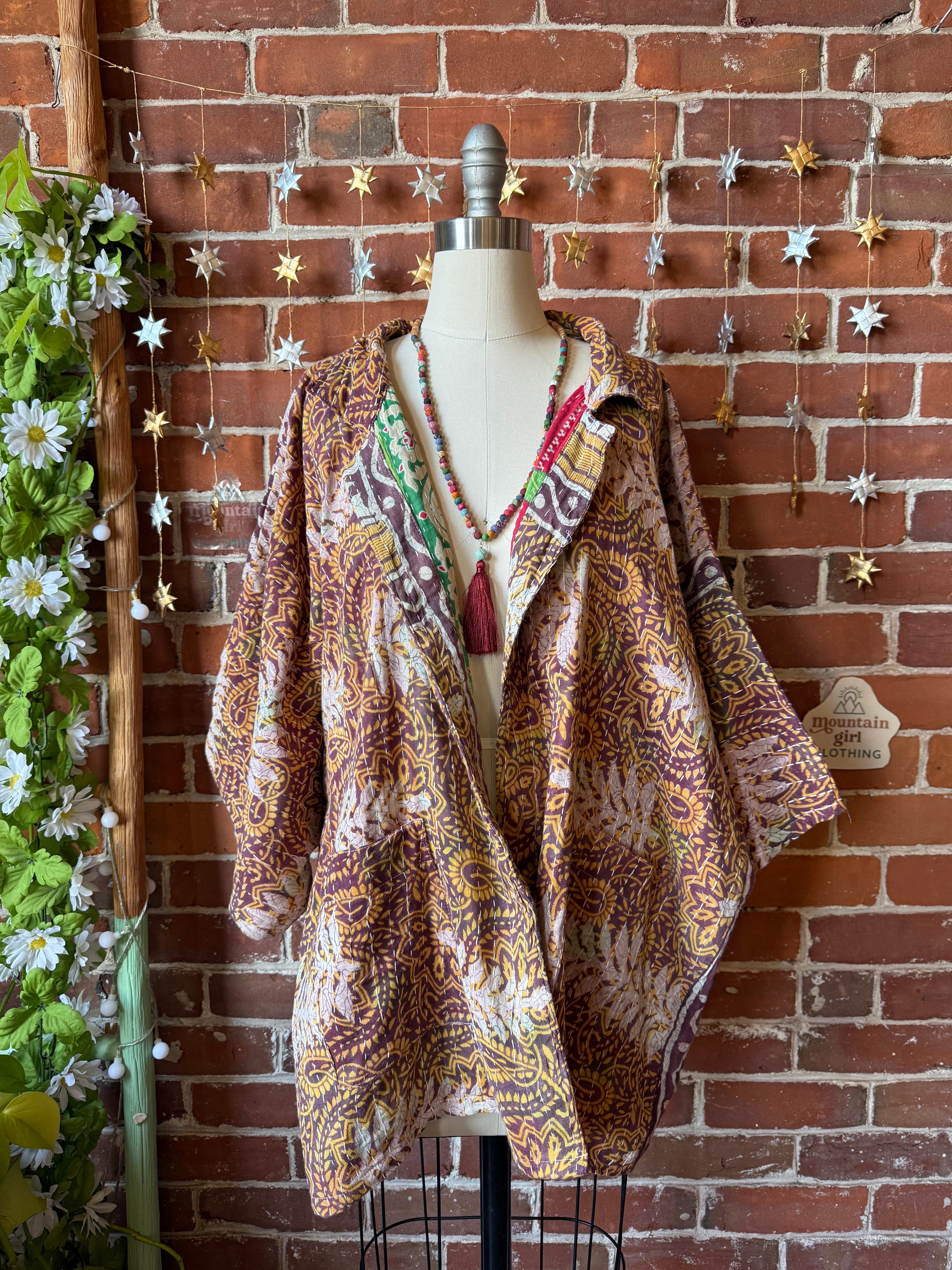 Upcycled jacket with vintage kantha fabric
