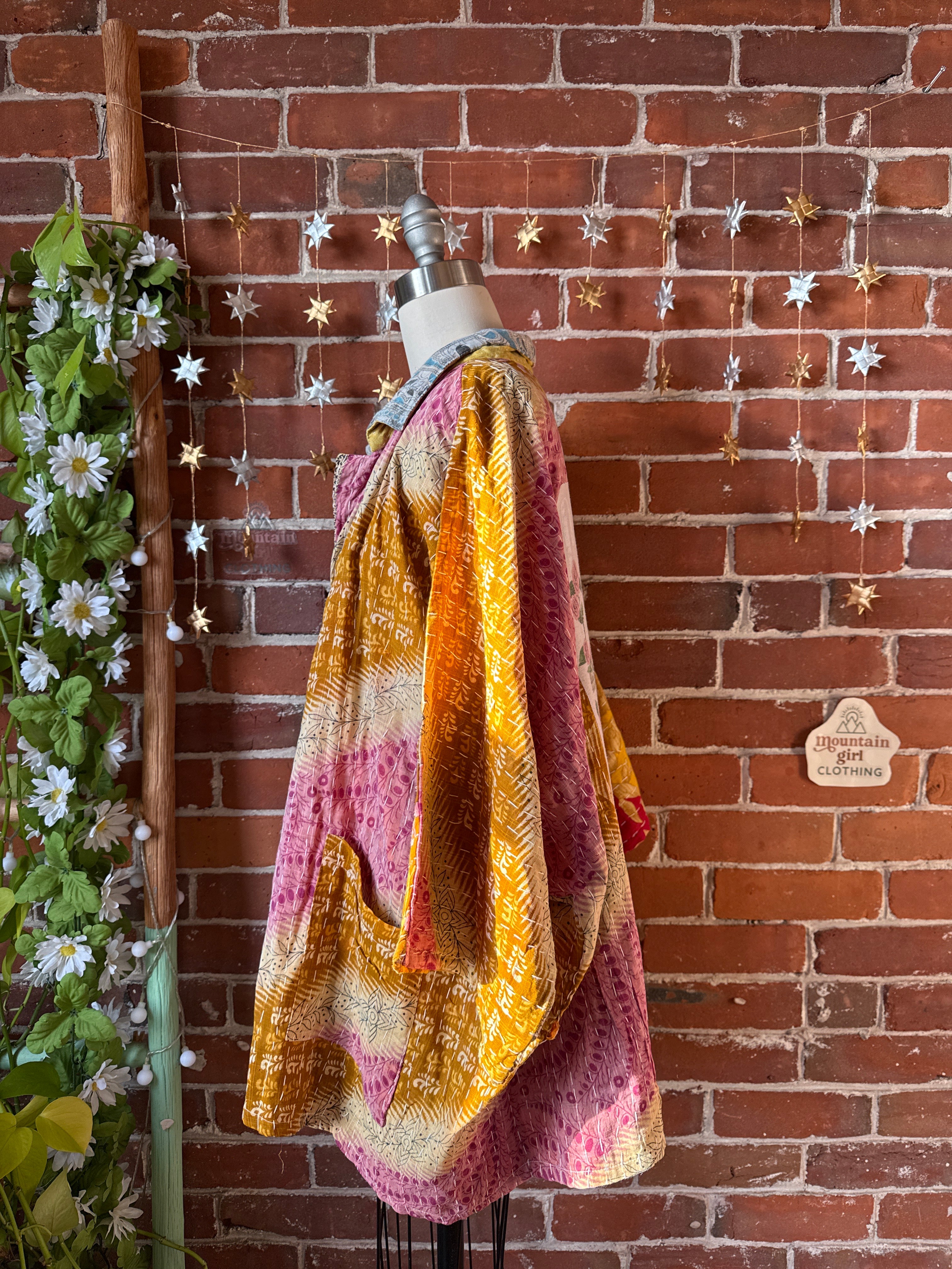 Upcycled jacket with vintage kantha fabric