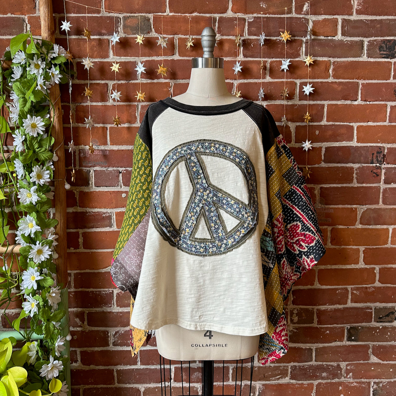 Upcycled soft cotton tee and vintage kantha fabric.
