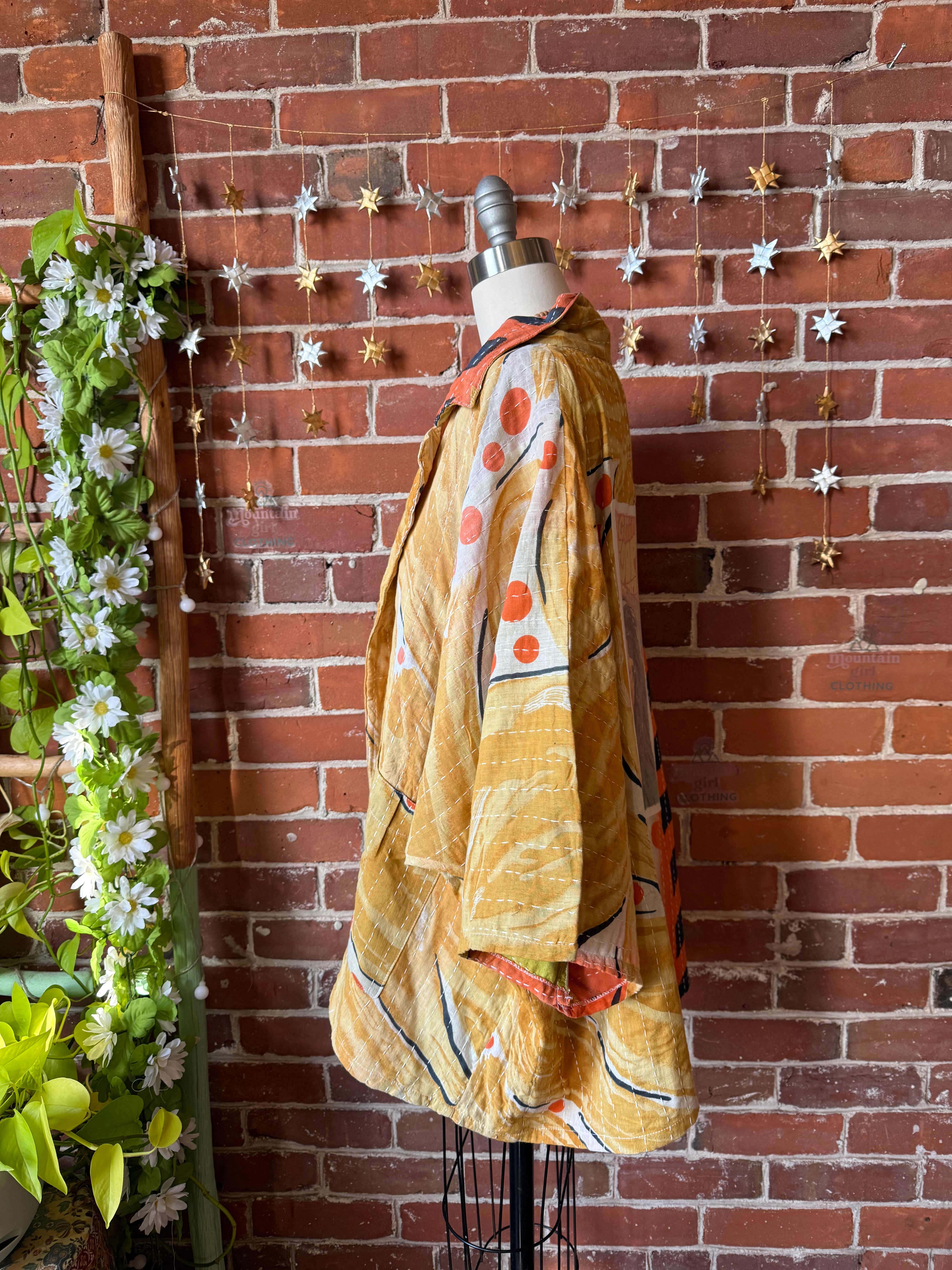 Soft lightweight Kantha jacket with collar and pockets at each side.
