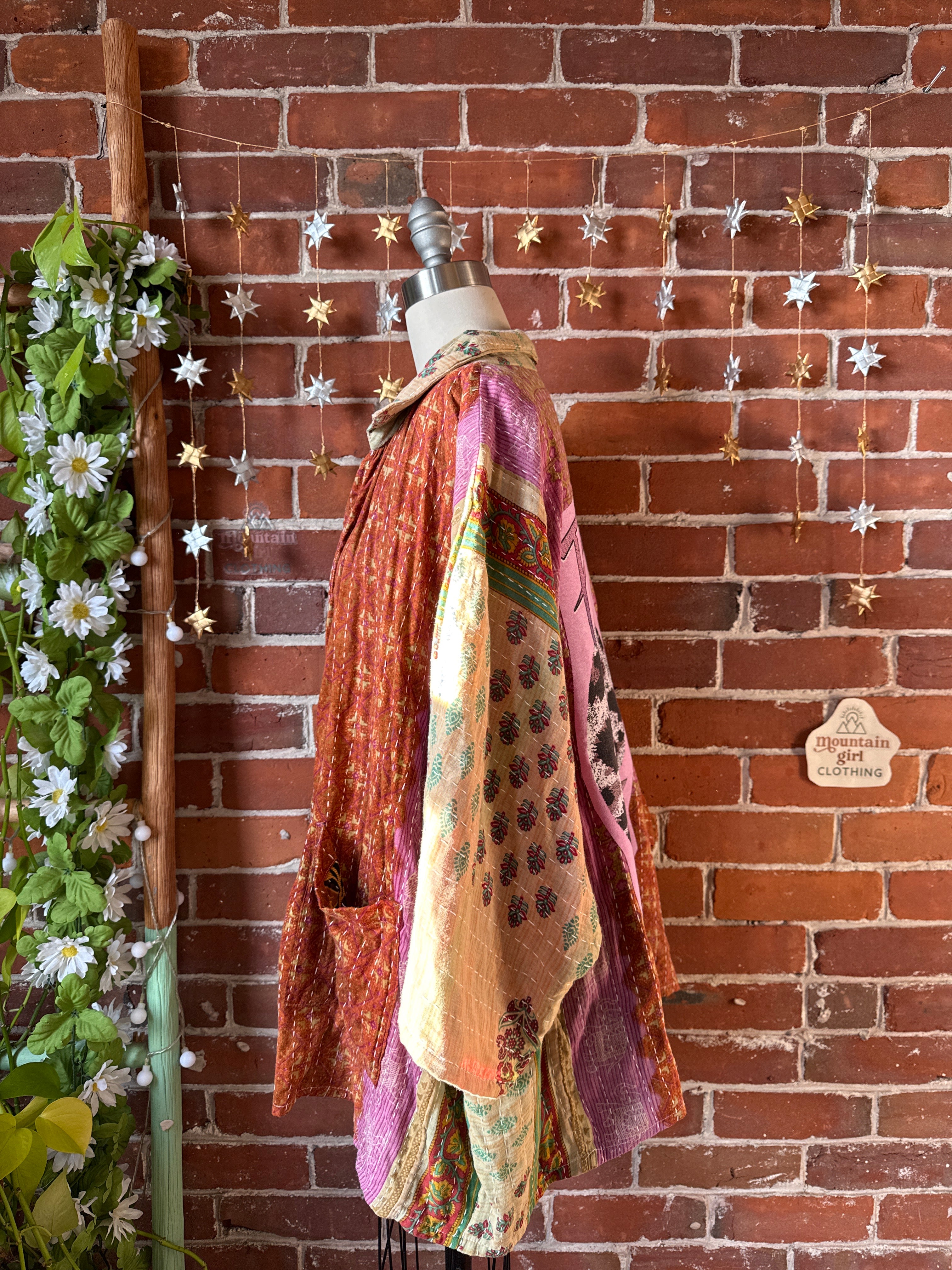 Upcycled jacket with vintage kantha fabric