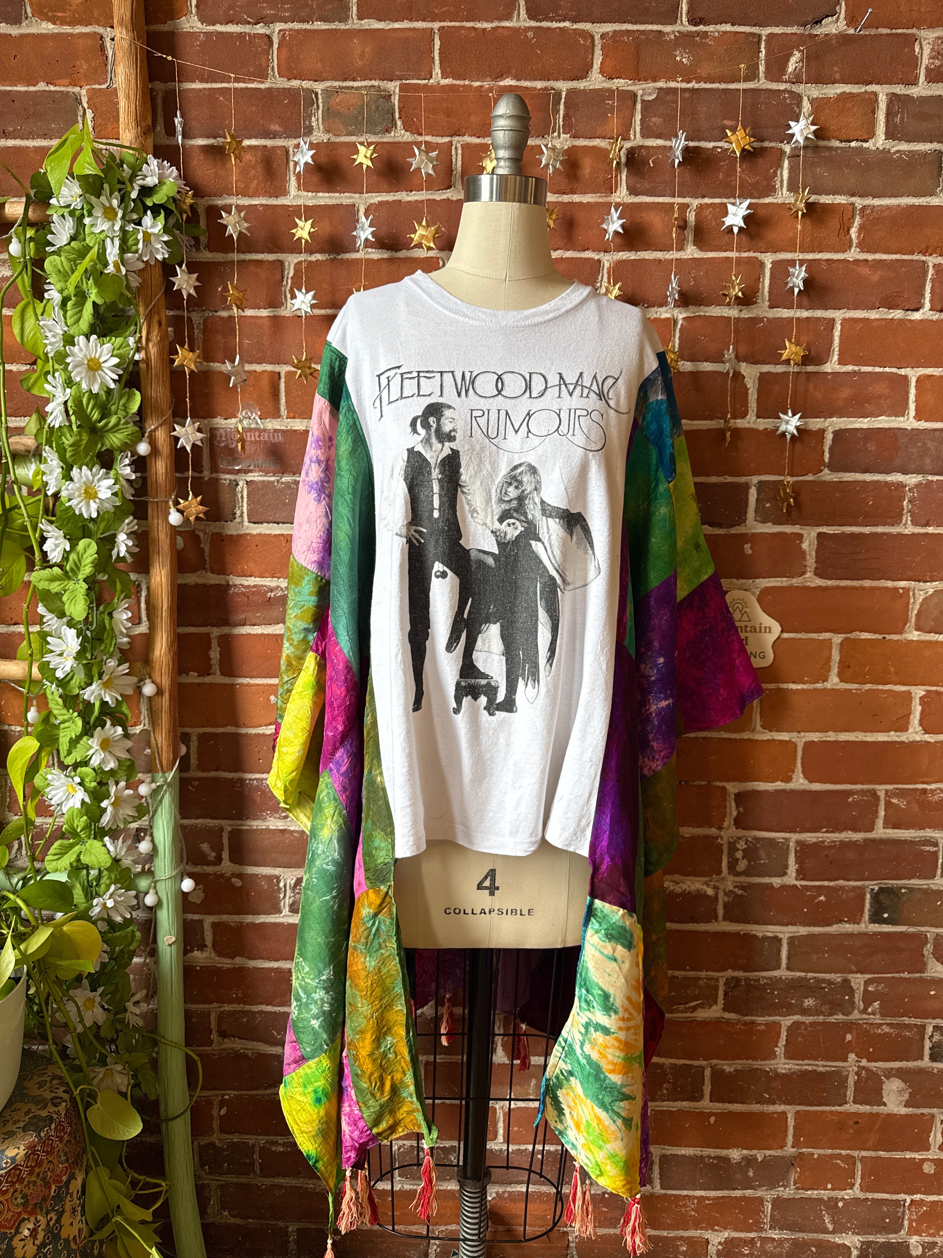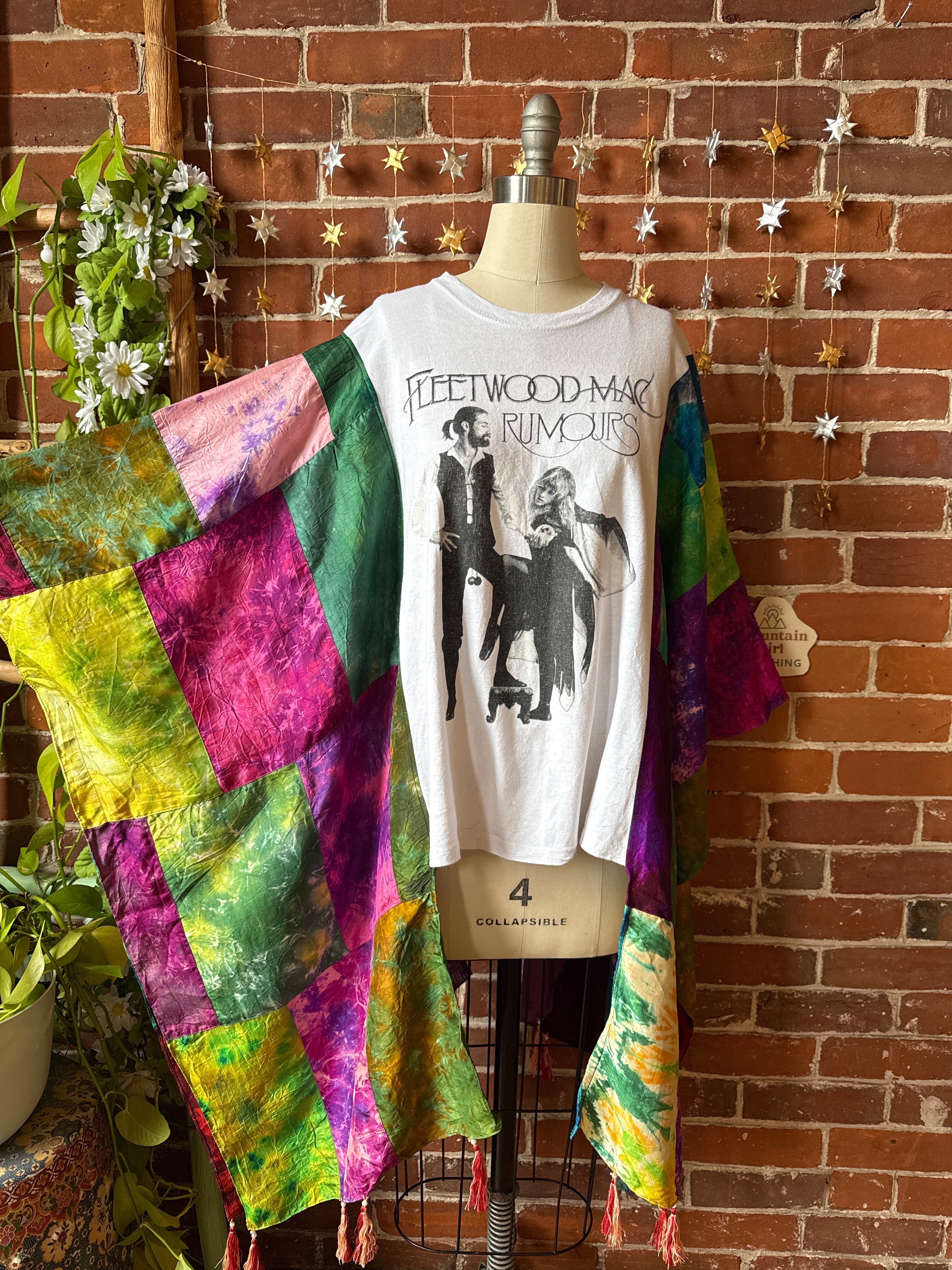 OOAK Winter Collection- Upcycled Silk Patchwork Tie Dye Fleetwood Mac Inspired Hi Lo Poncho Top